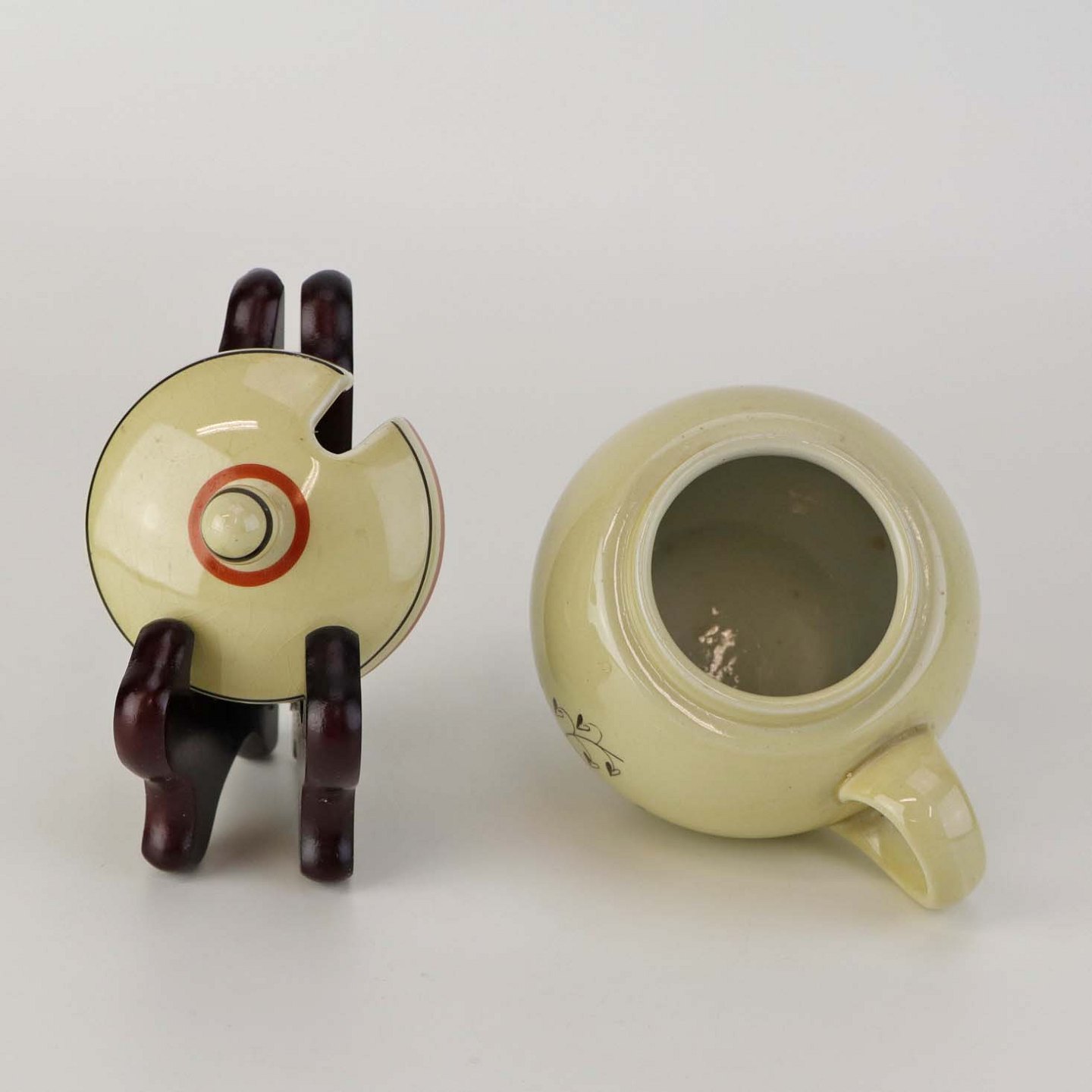 Fremstår med brugsspor på dekorationen og krakkeleringer i glasuren.