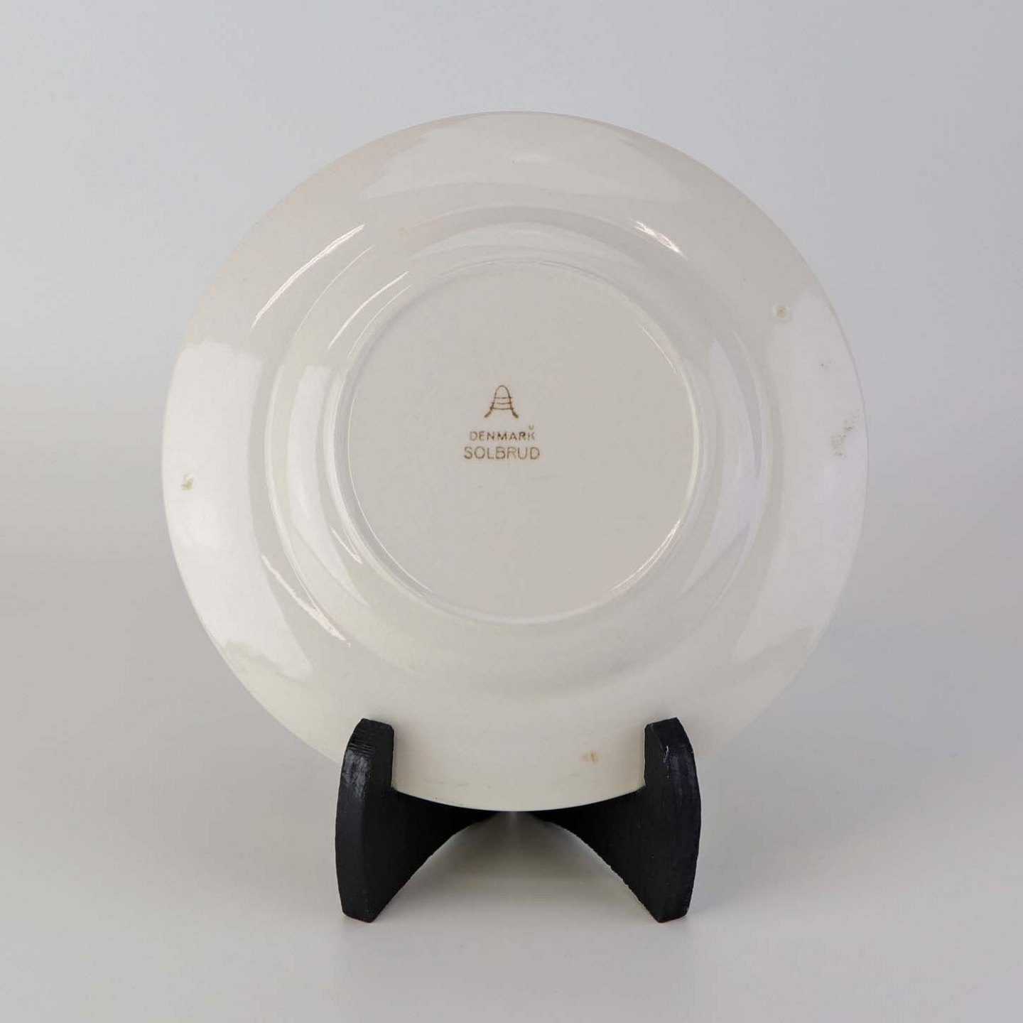 Desserttallerken i fajance fra stellet Solbrud fremstillet i perioden 1937-1967