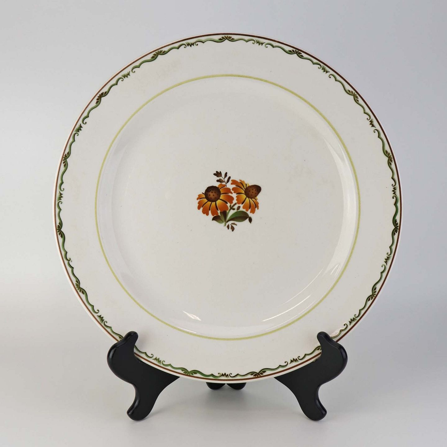 Rundt serveringsfad i fajance fra stellet Solbrud fremstillet i perioden 1937-1967