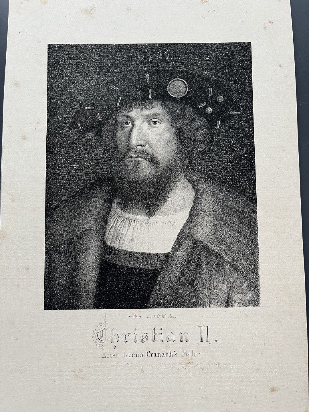 Litografi af Em. Bærentzen - Portræt af HM Kong Christian II af Danmark og Norge.
