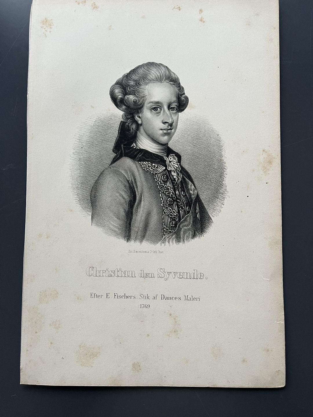 Litografi af Em. Bærentzen - Portræt af HM Kong Christian VII af Danmark og Norge.