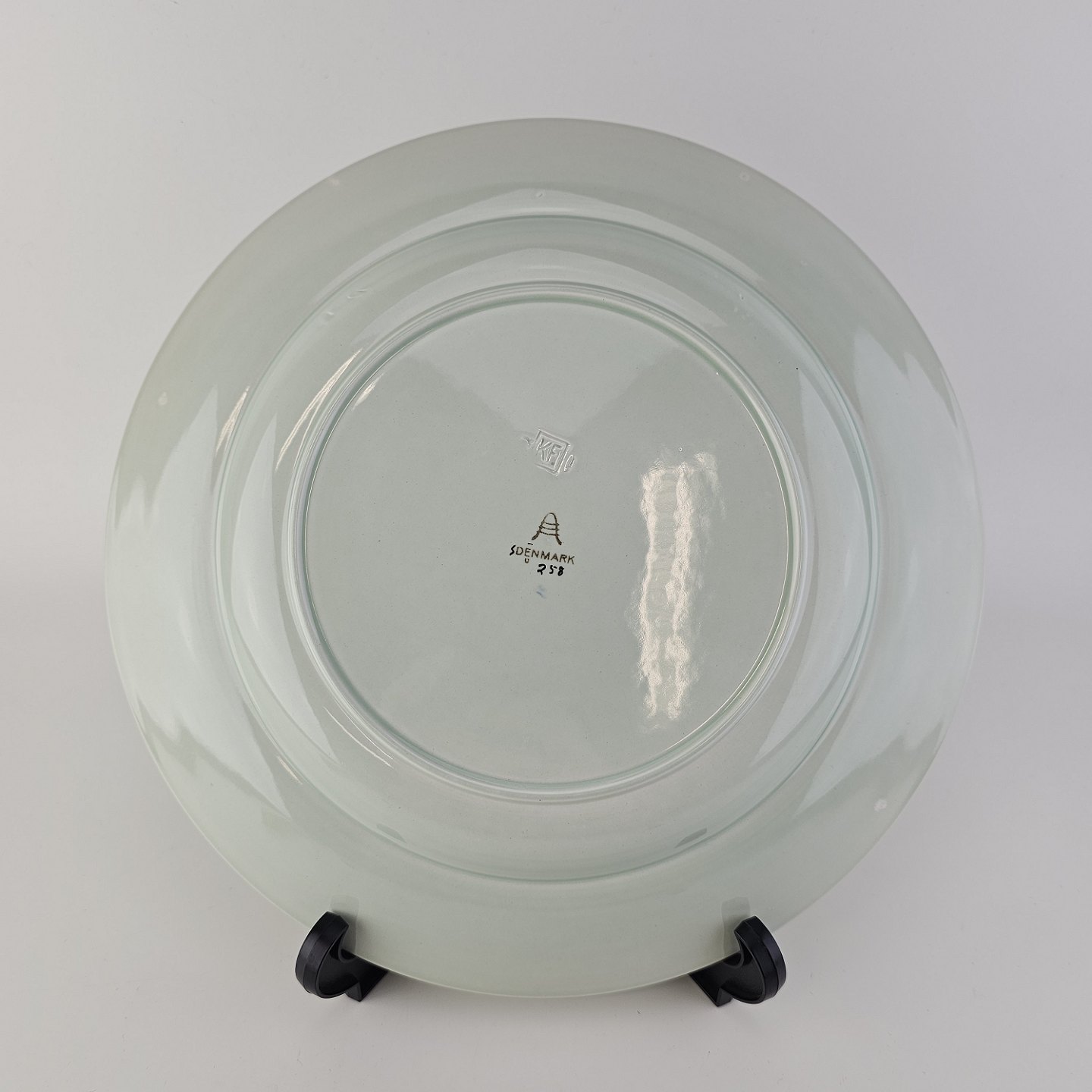 Stel i lysegrøn fajance med natur dekoration og flettet kant