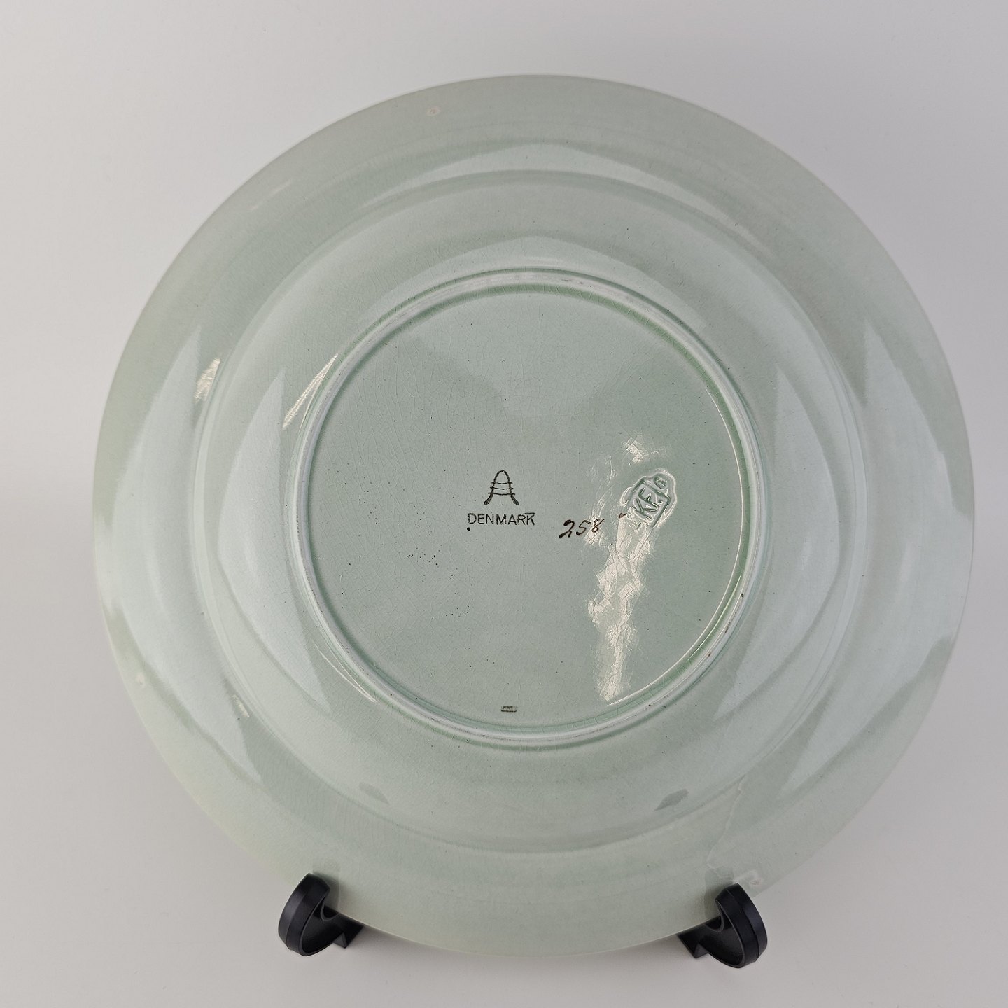 Stel i lysegrøn fajance med natur dekoration og flettet kant