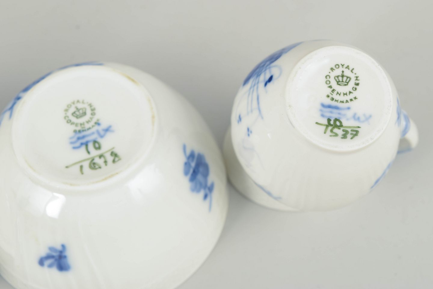 Royal Copenhagen, blå blomst flettet sukkerskål og flødekande.