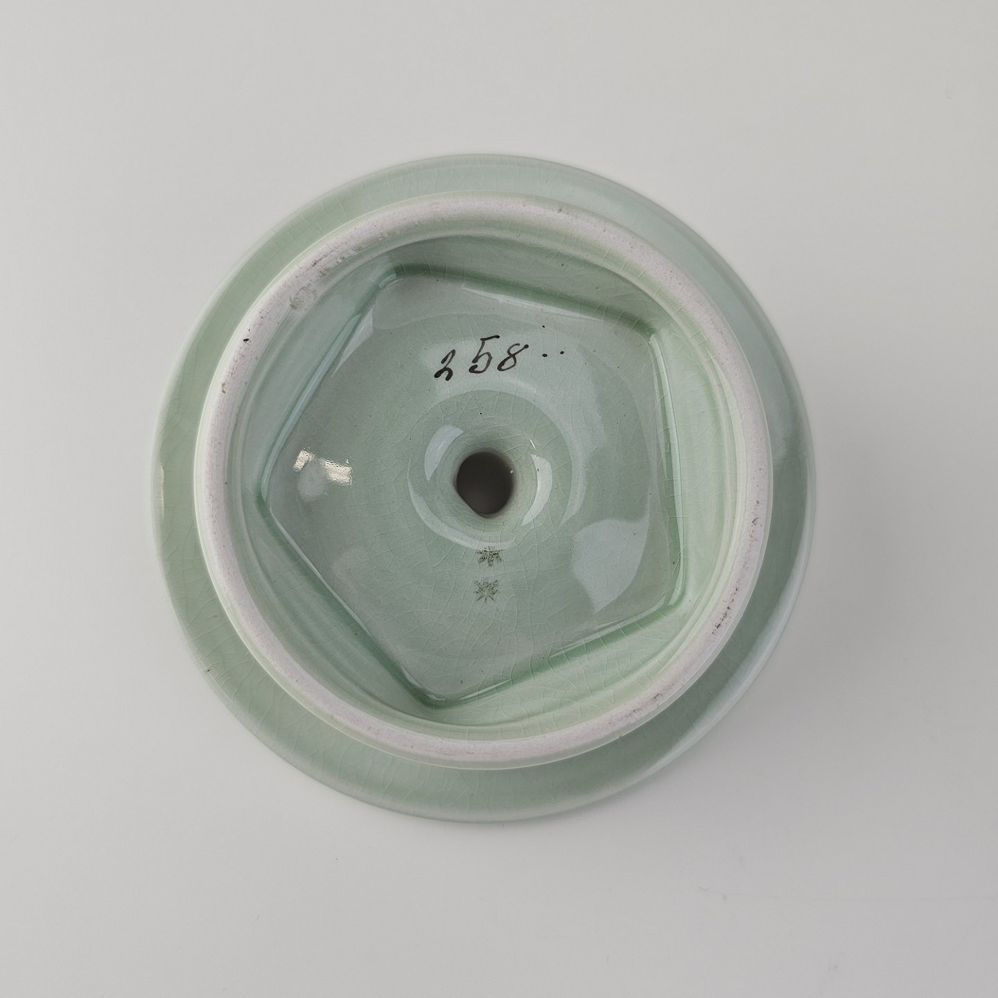 Stel i lysegrøn fajance med natur dekoration og flettet kant