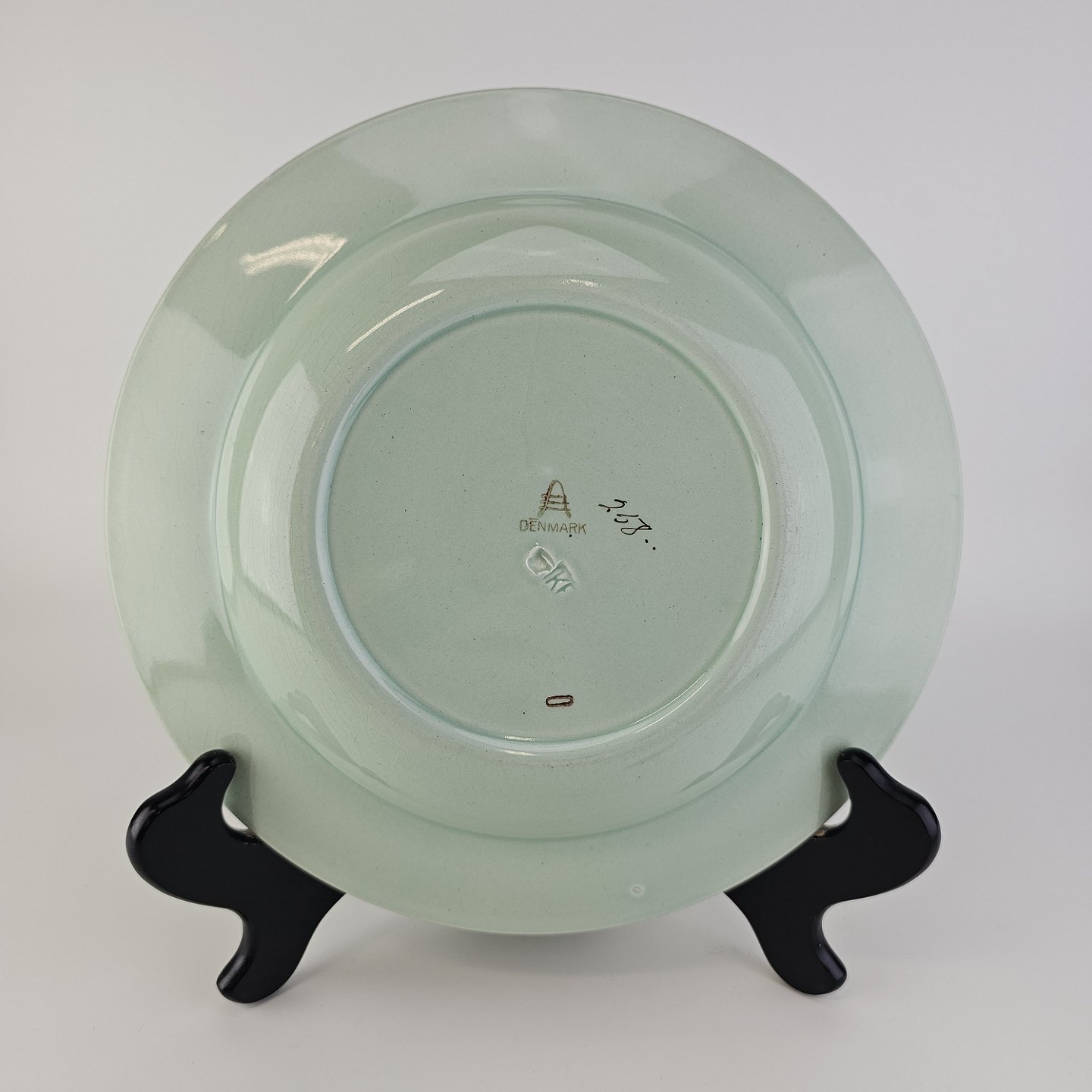 Stel i lysegrøn fajance med natur dekoration og flettet kant
