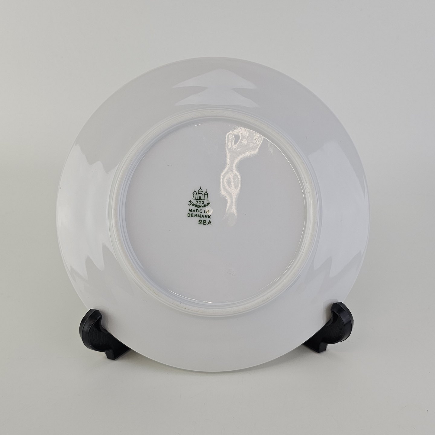 Tiber er stel i glat hvidt porcelæn med grå bort og guldkant