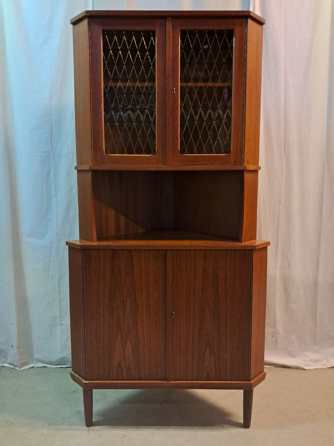 Hjørneskab i fineret teaktræ, fra 1960erne.