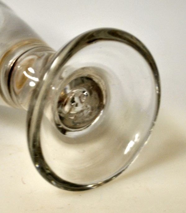 Frimurerglas. Conradsminde, 1834 - 1857, Danmark. Klart glas med bøjet fod og hul stilk. Dia.: 5,8 cm. H.: 12,3 cm.