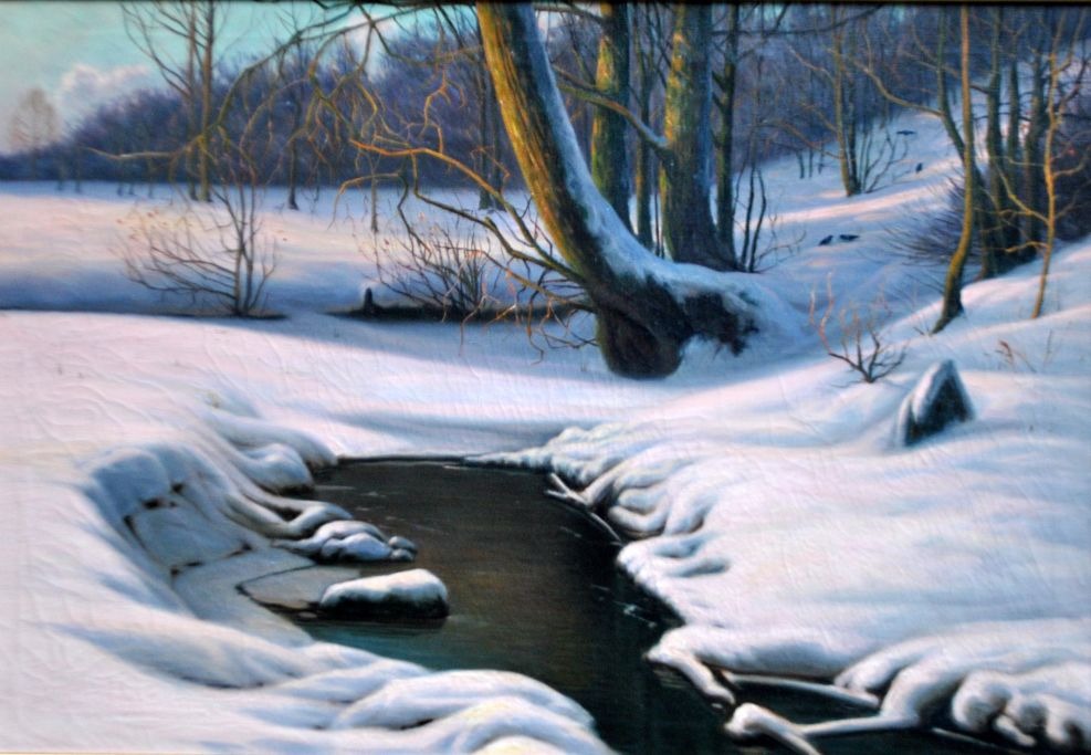 Wang, Albert (1864 - 1930) Danmark: Snelandskab. Olie på lærred. Signeret: A. Wang. H: 67 cm. B: 95 cm.