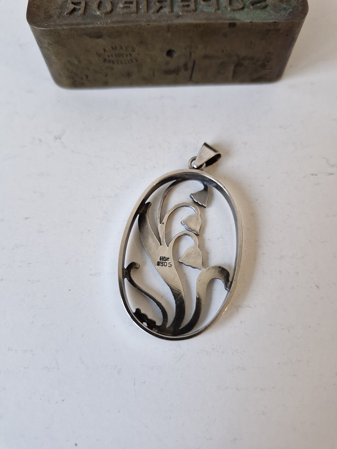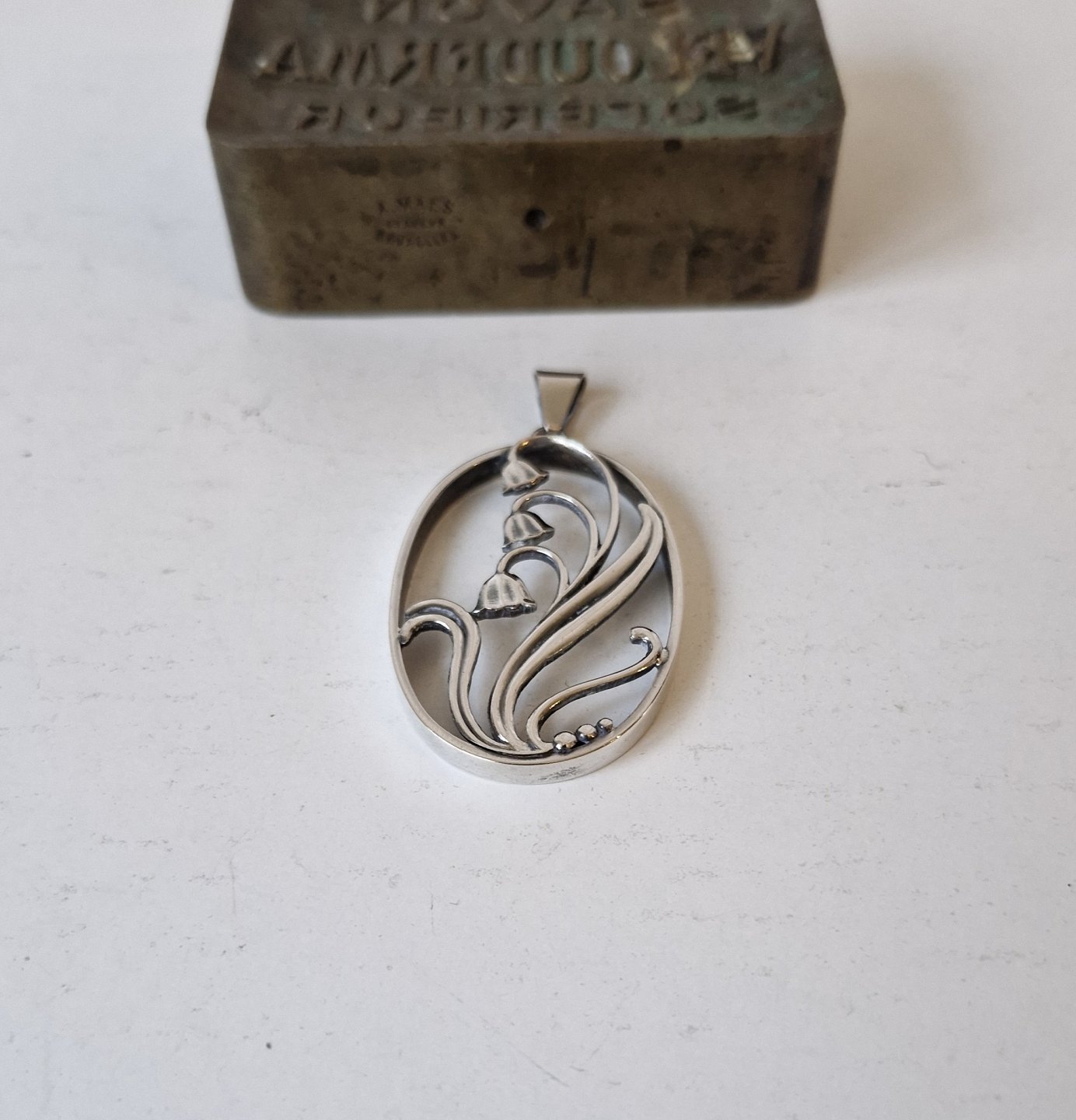 Hugo Grün sølv vedhæng dekoreret med liljekonval