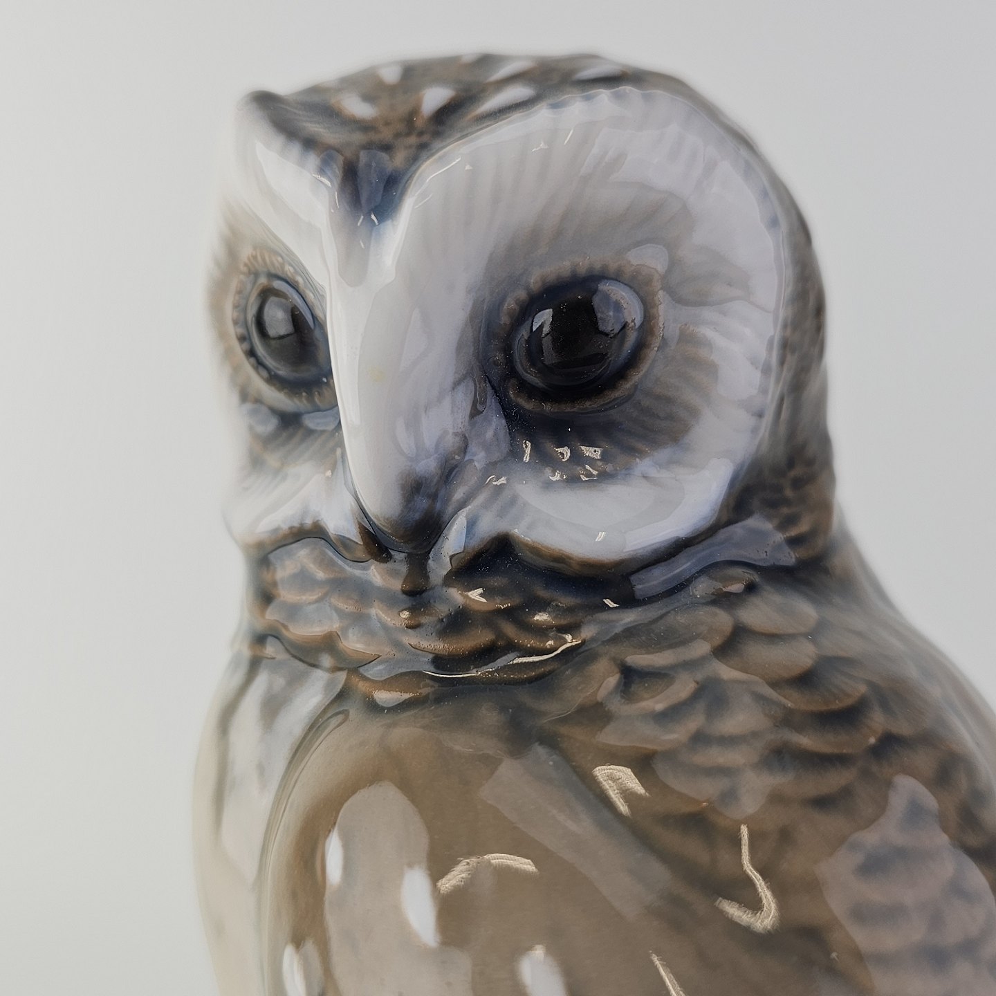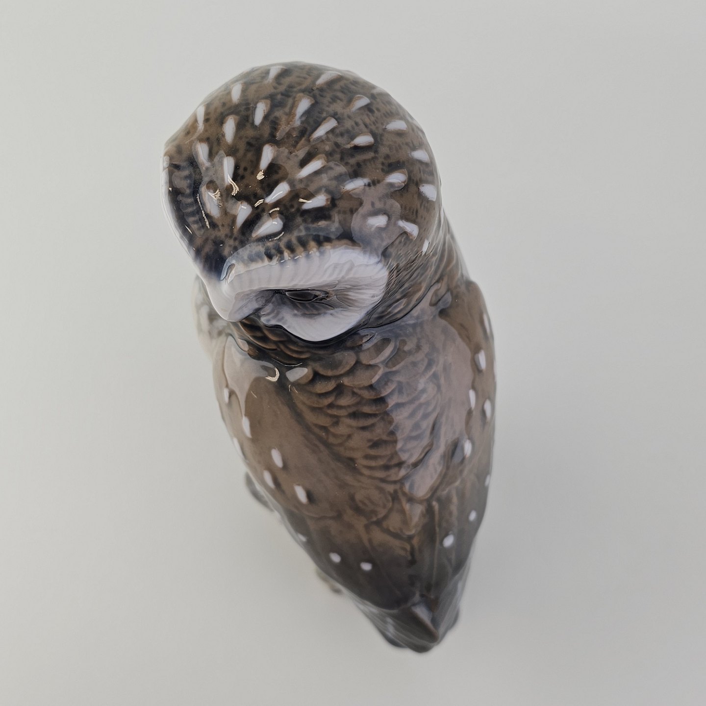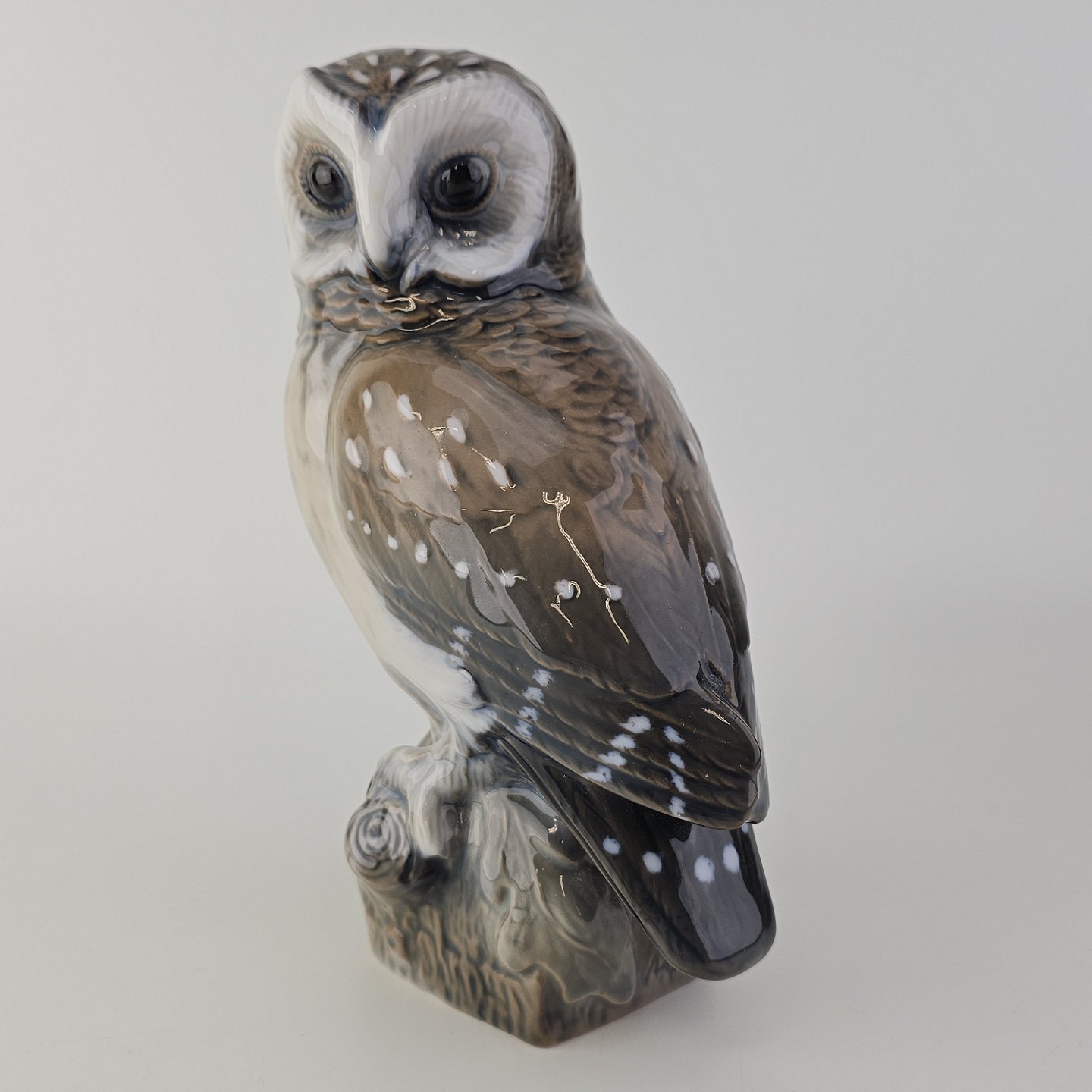 Figur i håndmalet porcelæn med motiv af en slørugle