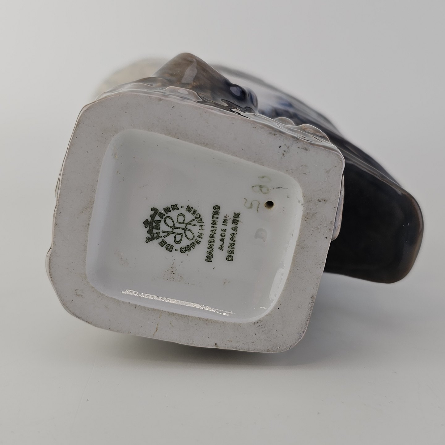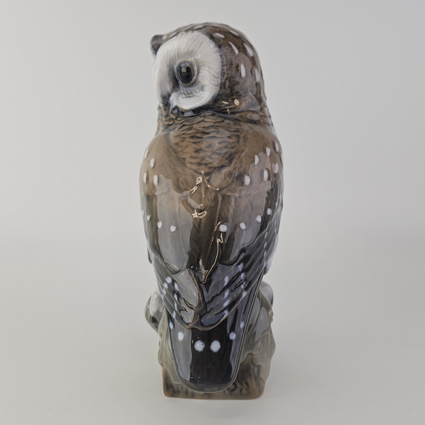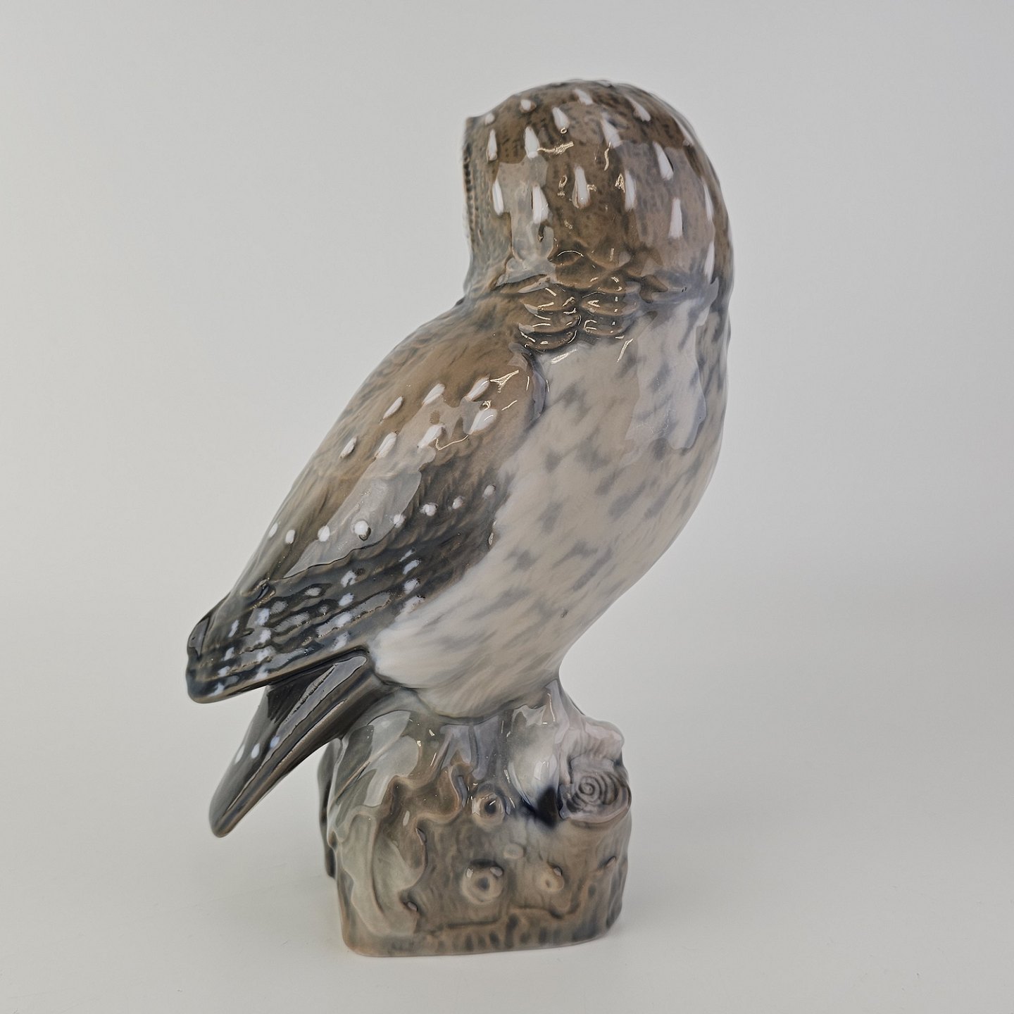 Figur i håndmalet porcelæn med motiv af en slørugle