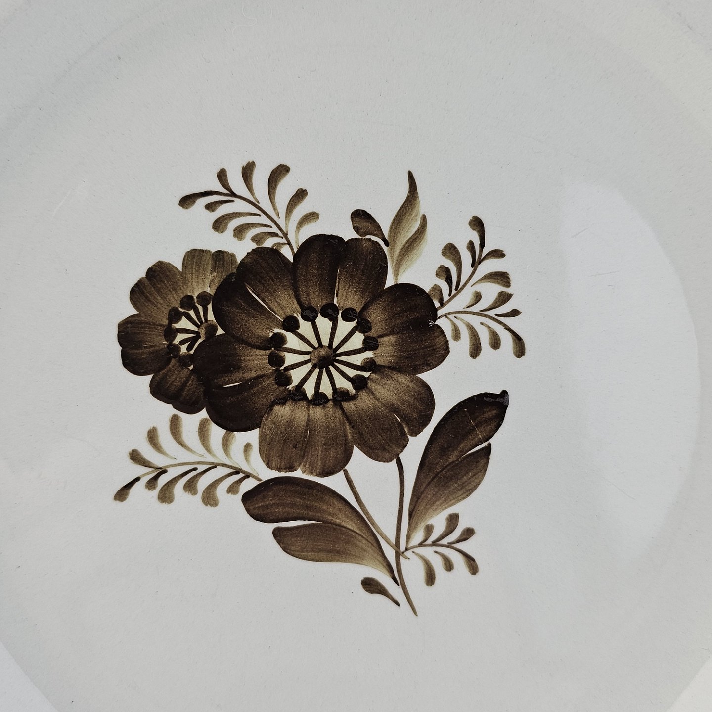 Frokosttallerken i fajance fra stellet Brun Tranquebar fra år 1919