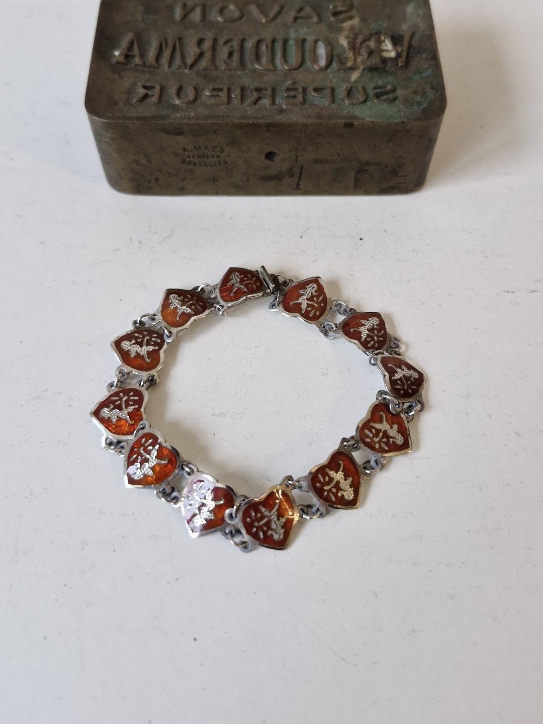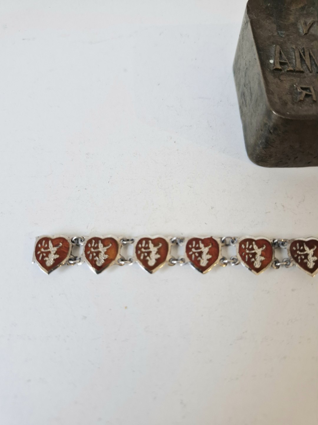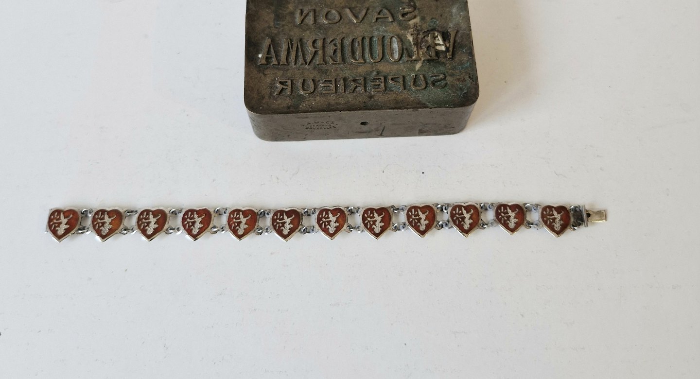 Hjerte armbånd i sølv og rød emalje