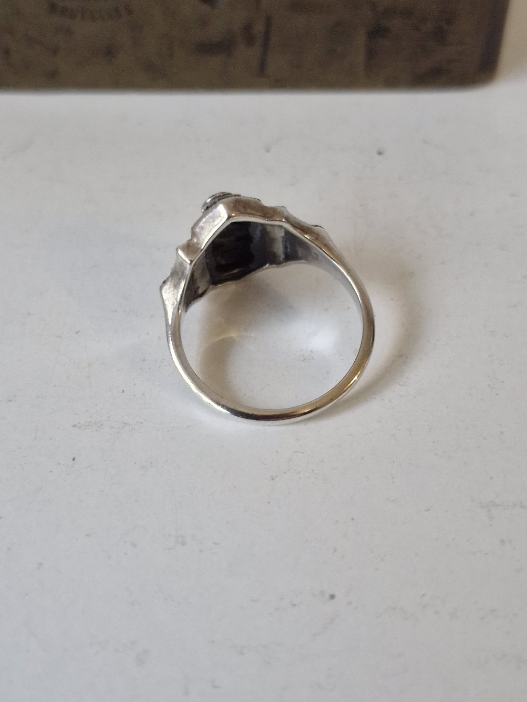 Art deco ring i sterlingsølv med tre opaler omkranset af markasitter