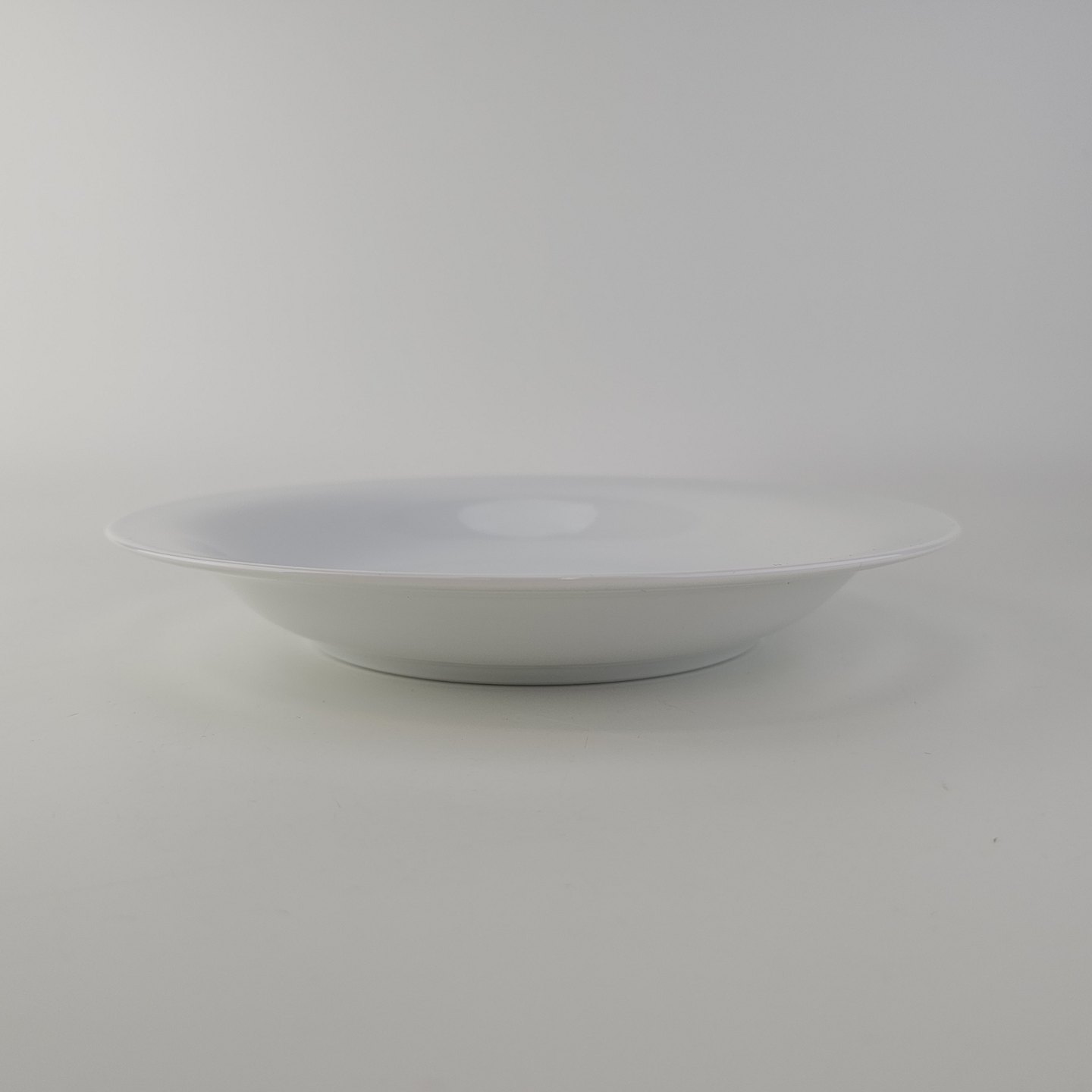 Dyb tallerken i glat hvidt porcelæn fra stellet Sadolin