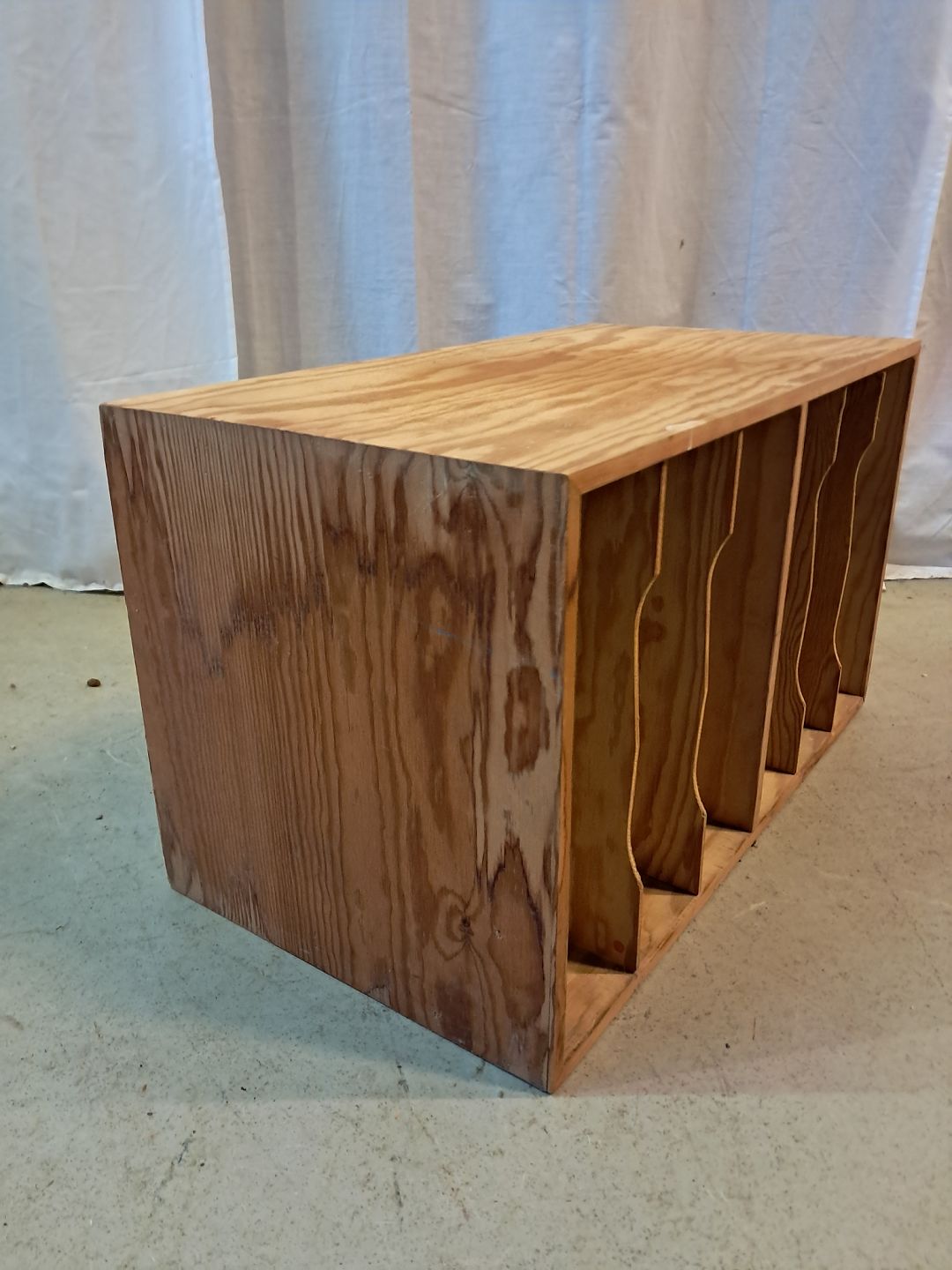 Lp-reolkasse i krydsfiner, fra 1990erne.