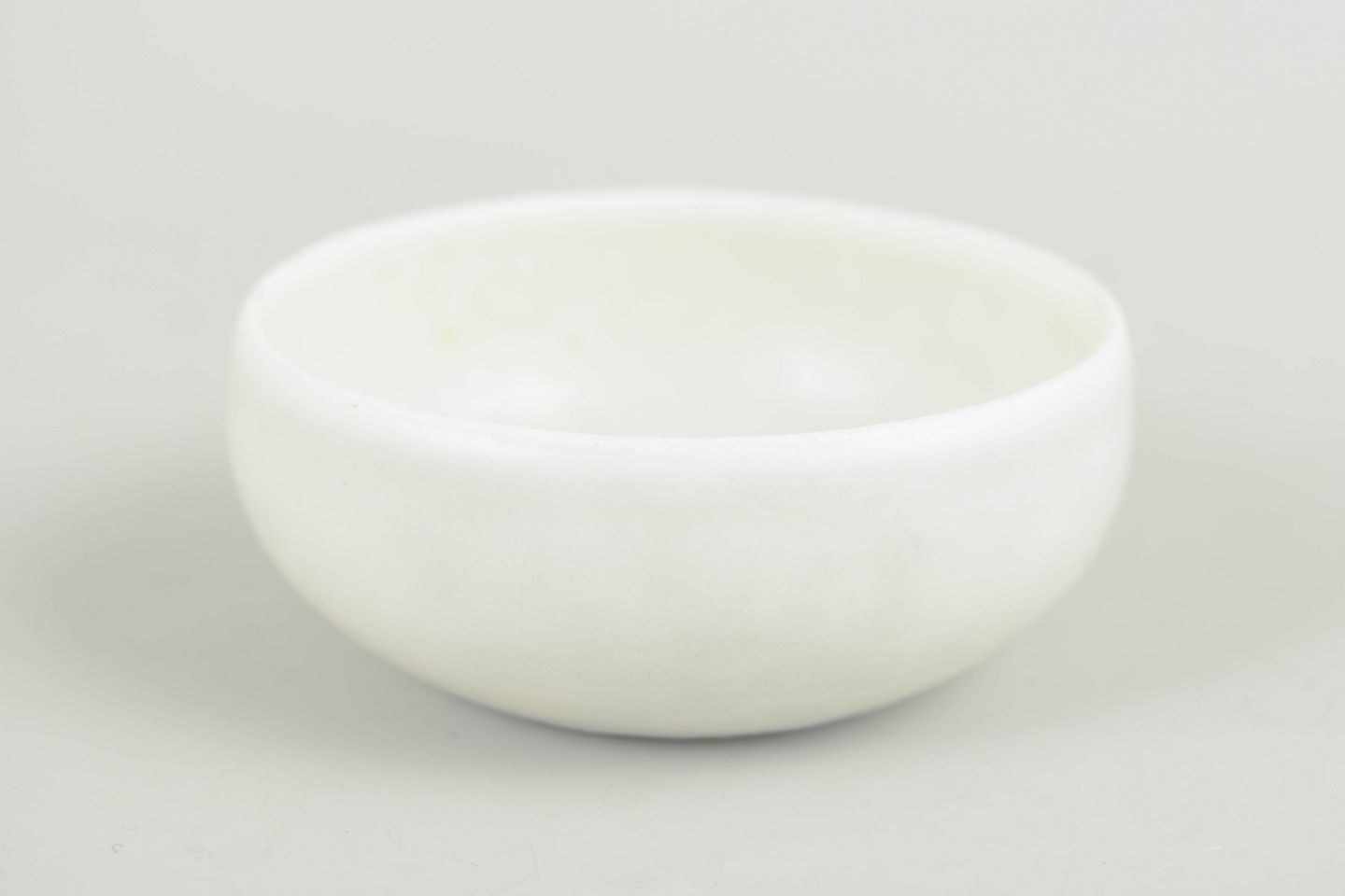 Lille rund skål i drejet stentøj med hvid, let satinmat glasur og blødt afrundet form. Dekoreret i enkelt og stilrent udtryk, typisk for Stålhånes formsprog.