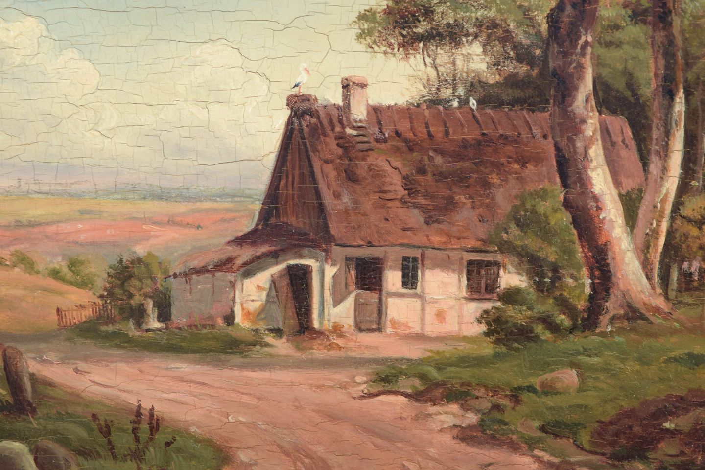 Den danske guldalder var præget af en poetisk og naturtro skildring af landskab og hverdagsliv, ofte med små gårde, veje og trægrupper som bærende motiver. Kunstnere fra perioden arbejdede med et roligt, harmonisk billedsprog og en afbalanceret farveholdning, hvor lys og atmosfære spillede en central rolle. Olie på træ eller mahogni blev hyppigt anvendt til mindre formater med høj detaljerigdom.