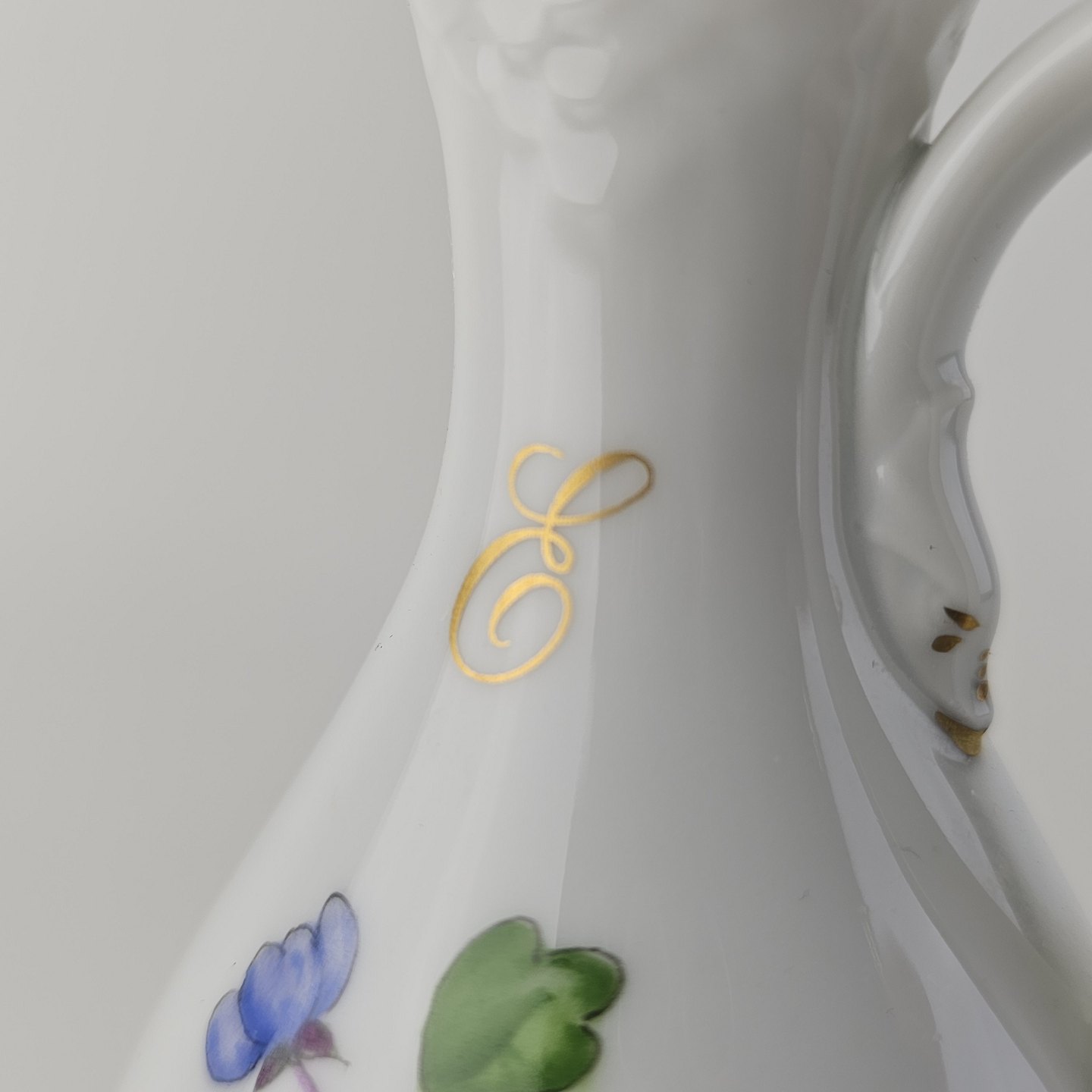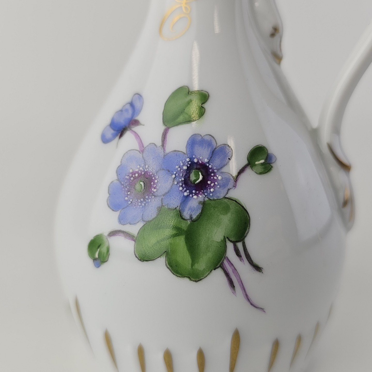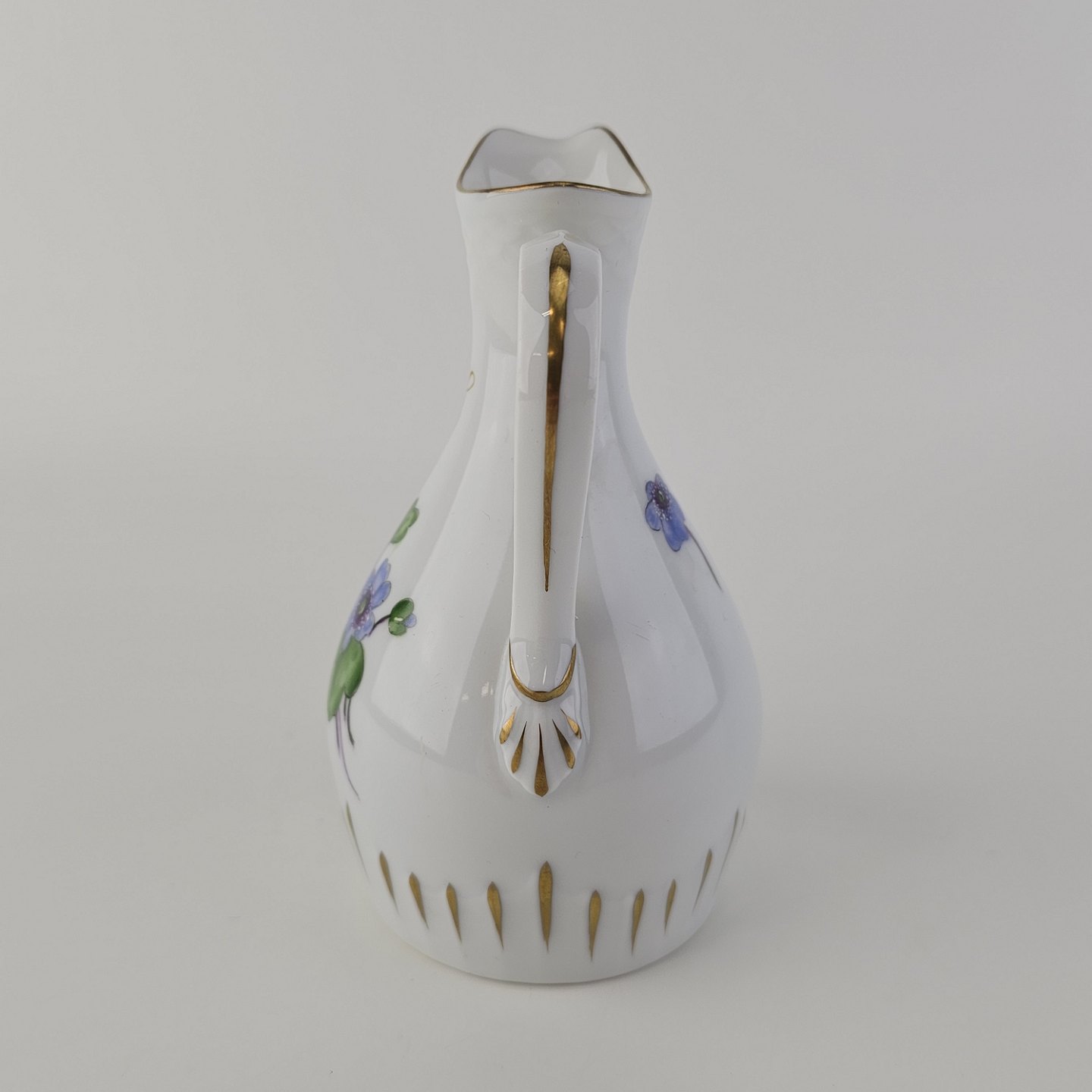 Antonius er af hvidt porcelæn med skælform dekoreret med håndmalede blå anemoner og guldkant. Også kendt under navnet Blå Anemone.