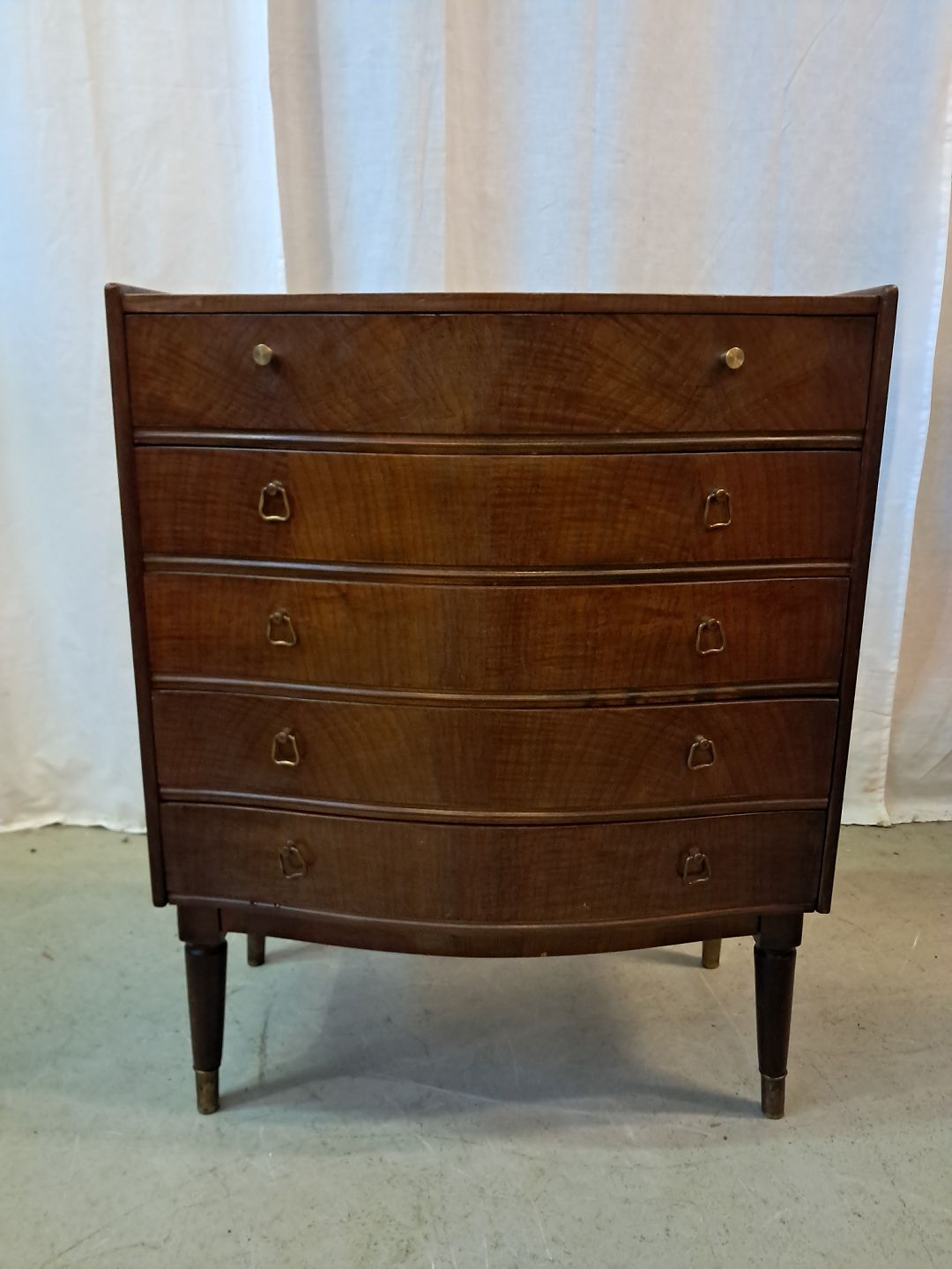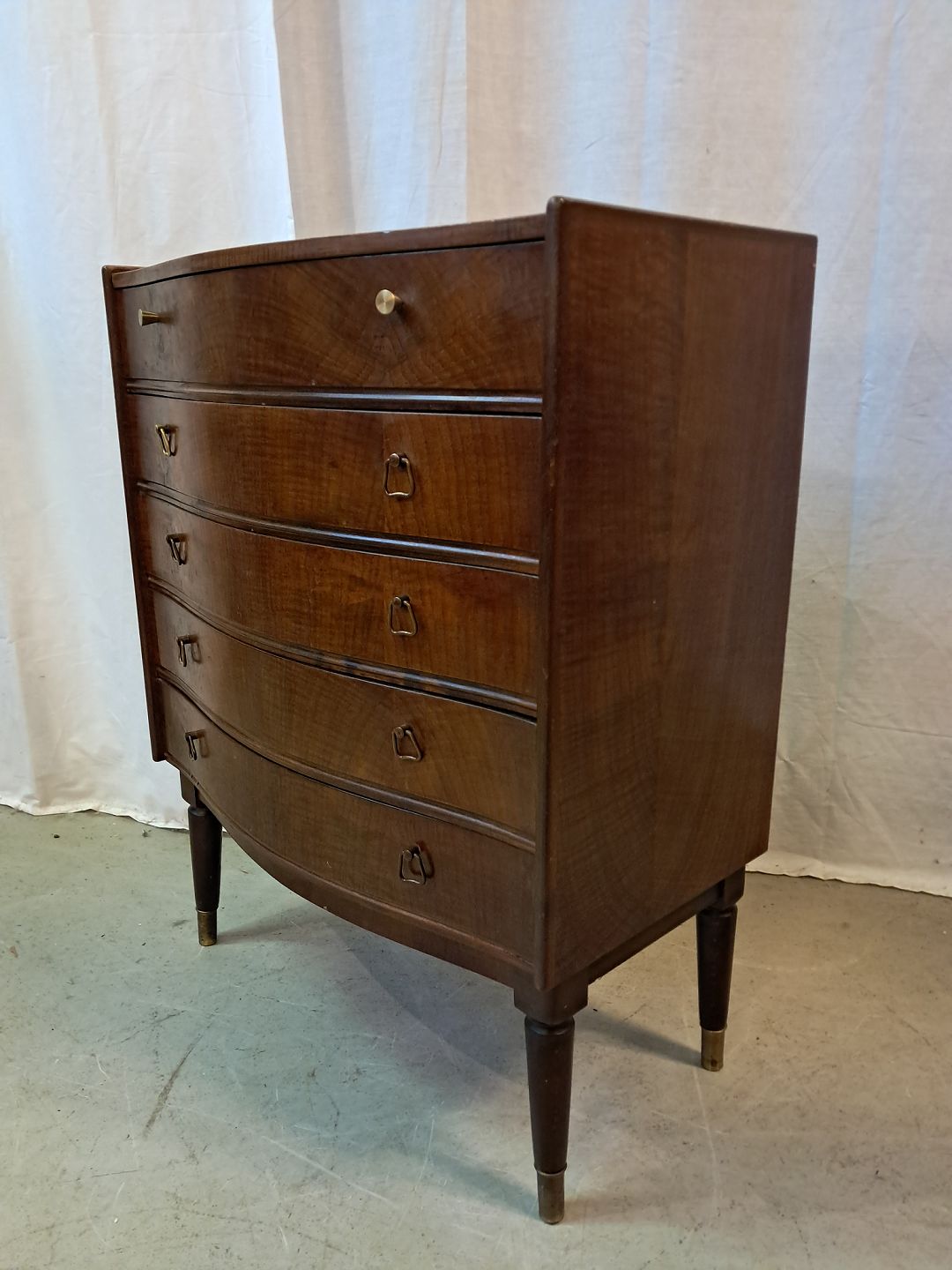 Kommode i fineret nødetræ, fra 1950erne.