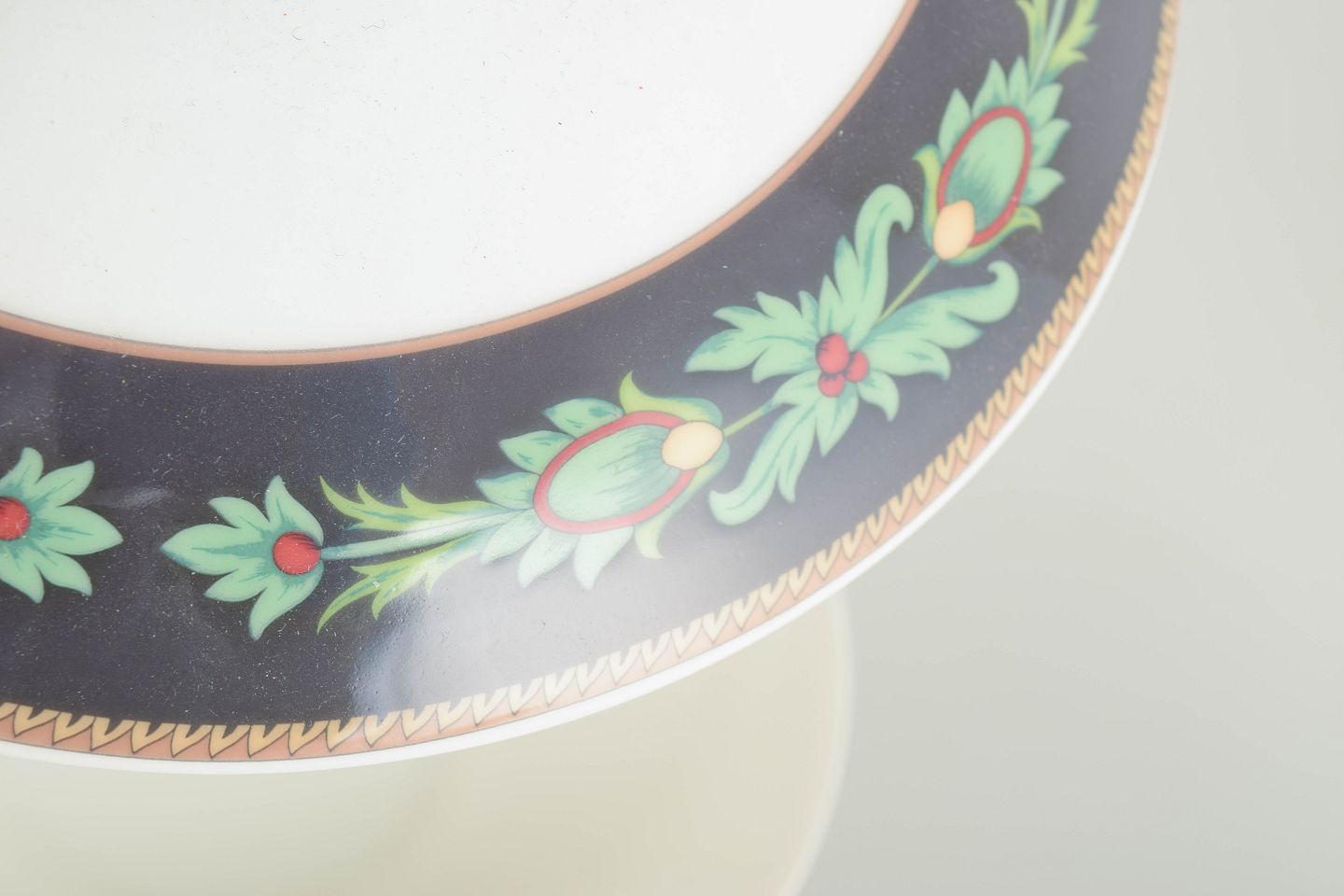 Terrin med låg i porcelæn fra Rosenthal Classic, dekoreret i serien Mayfair med mørk bort, stiliserede grønne bladranker og gulddetaljer, produceret i 1980’erne.