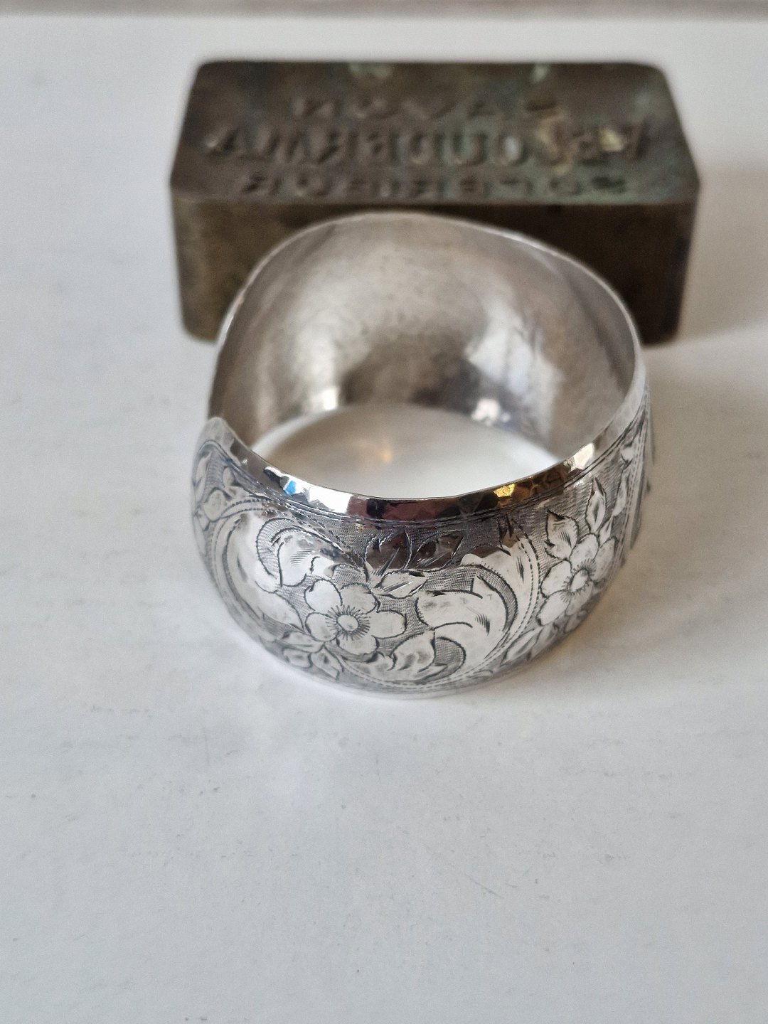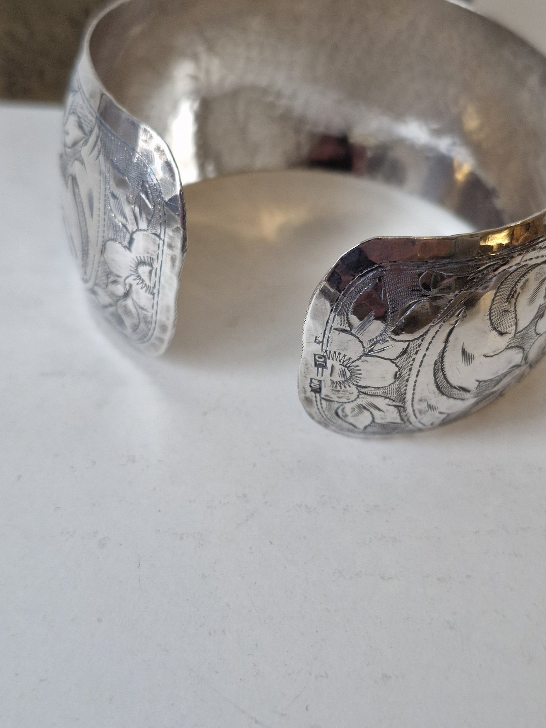 Vintage armring i sølv, smukt ciseleret blomster motiv