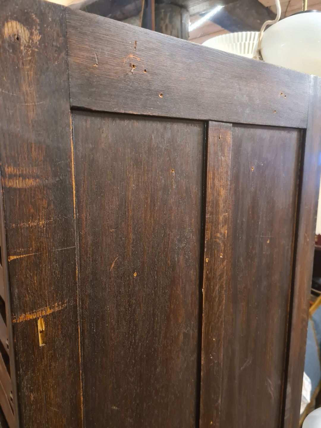 Ældre arkivskab m. jalousilåge, udført i mørk bejdset egetræ.