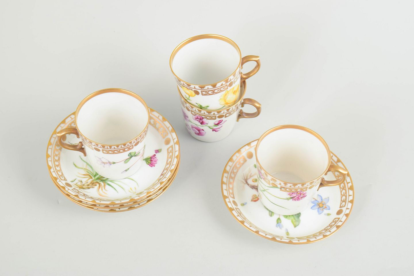Royal Copenhagen, sæt på fire små kaffekopper med tilhørende underkopper.