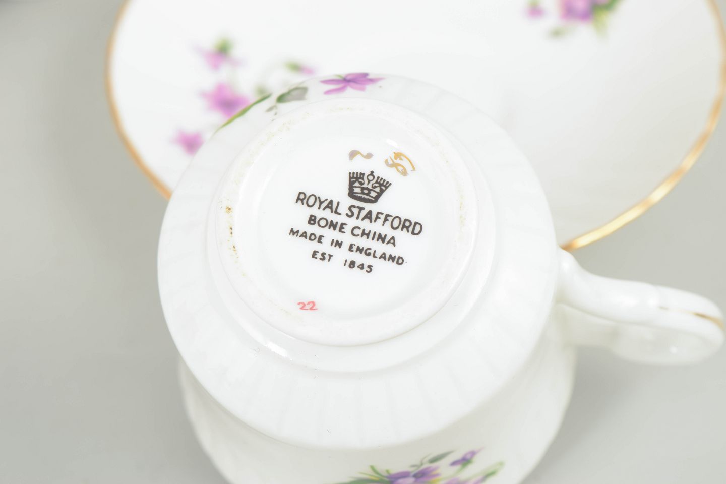 Royal Stafford blev grundlagt i 1845 i Staffordshire, England, et af landets vigtigste centre for porcelæns- og keramikproduktion. Virksomheden er især kendt for sit benporcelæn med klassiske blomsterdekorationer og for en lang tradition inden for engelsk bordservice, produceret til både hjemmemarkedet og eksport.