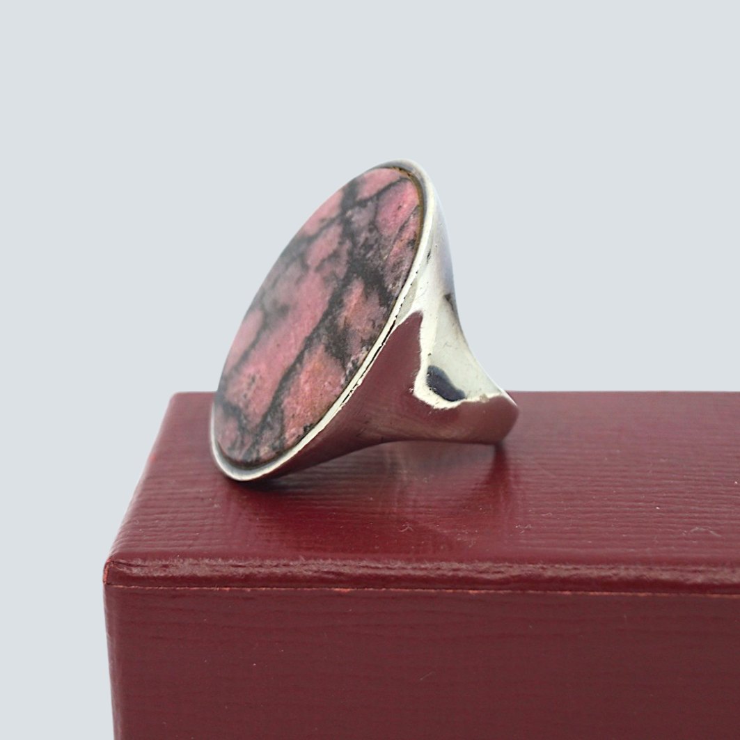 Hugo Grün; Sølvring prydet med stor oval tugtupit. Ring str. 53.