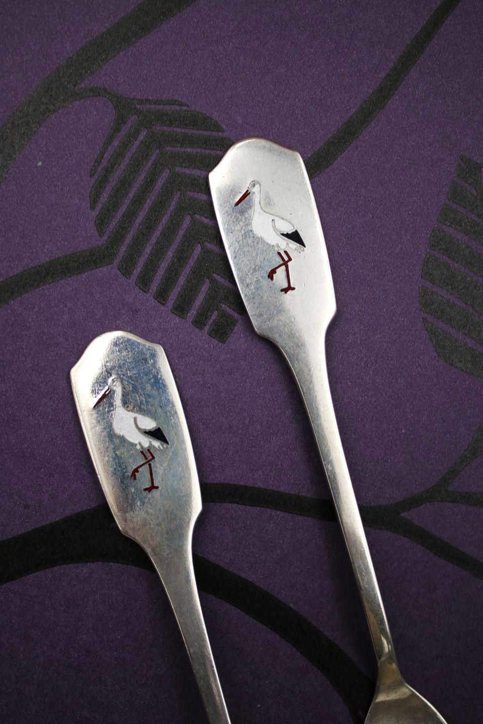 Forsiden >> Portal kategorier   >>  Bestik   >>  Ægte sølv   >>  Internt nr.: Barnebestik med stork  Send os en E-mail