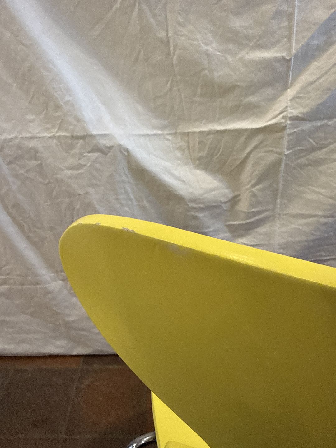 Arne Jacobsen Myrestol gul malet stel i forkromet metal.