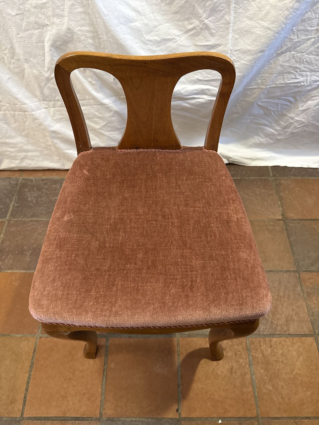 Ukendt formgiver lav rygget stol i lakeret mahogni m. sæde i velourstof.