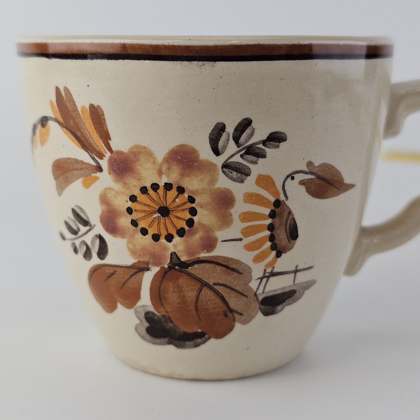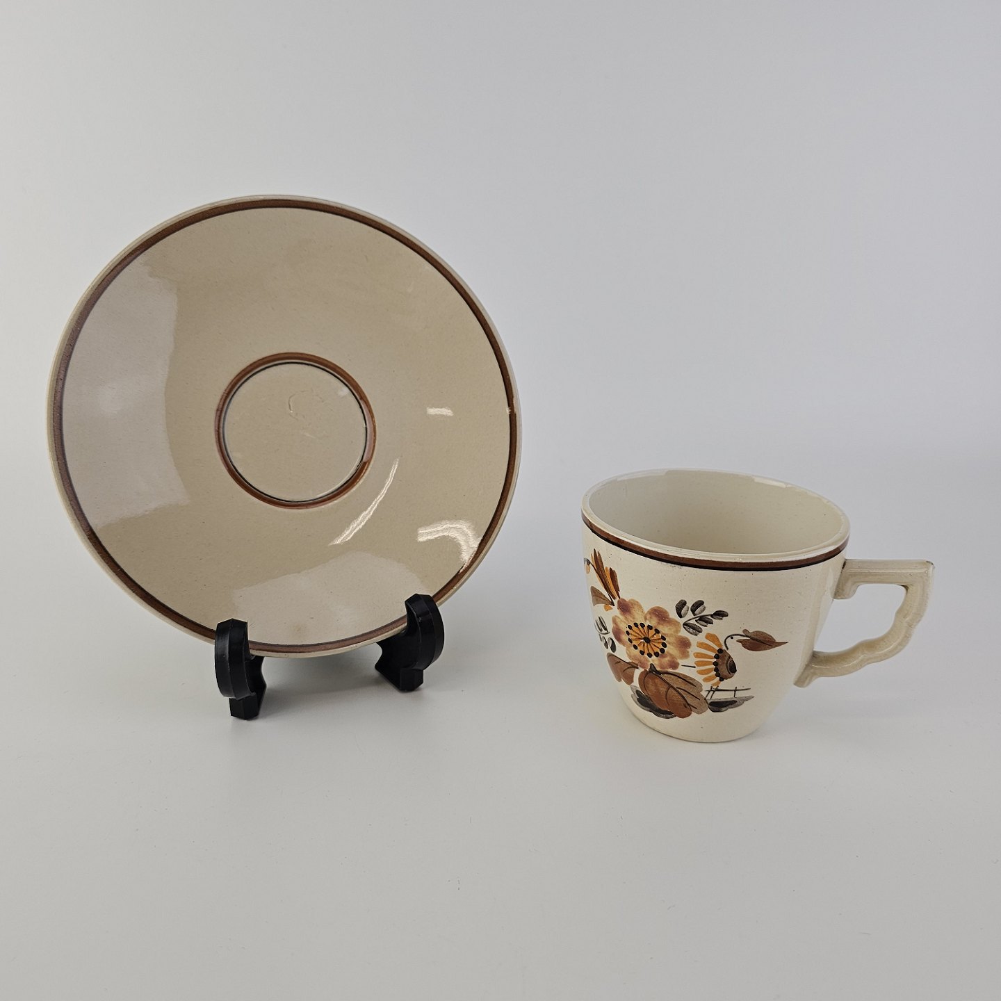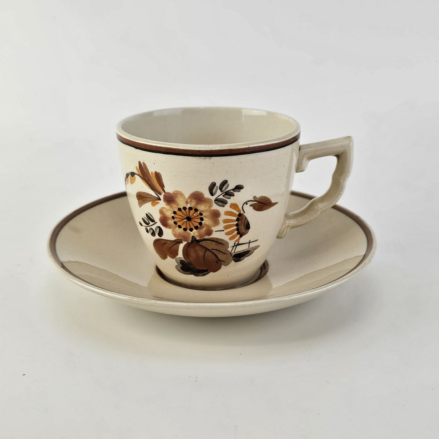 Knud er cremefarvet fajance dekoreret med flettet kant og brune og orange blomster. Stellet blev produceret i år 1934-1963.