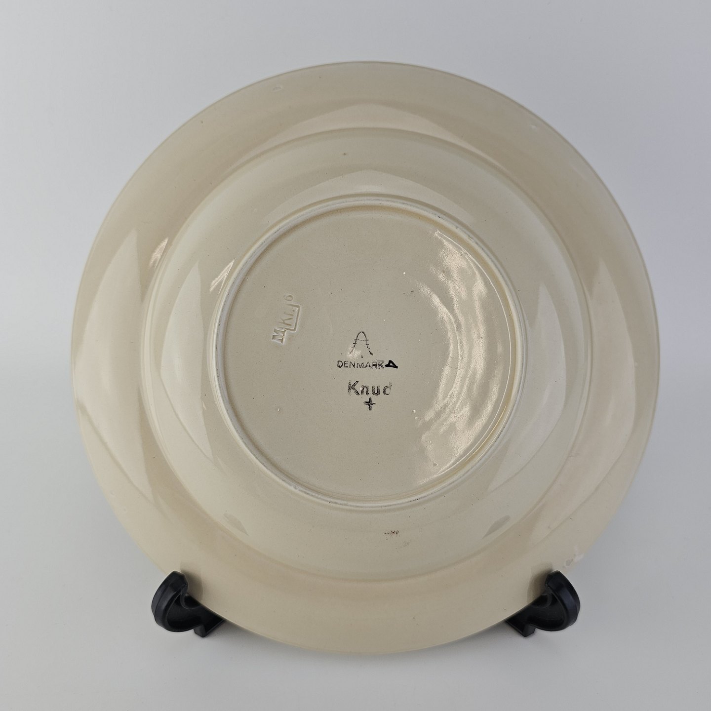Knud er cremefarvet fajance dekoreret med flettet kant og brune og orange blomster. Stellet blev produceret i år 1934-1963.