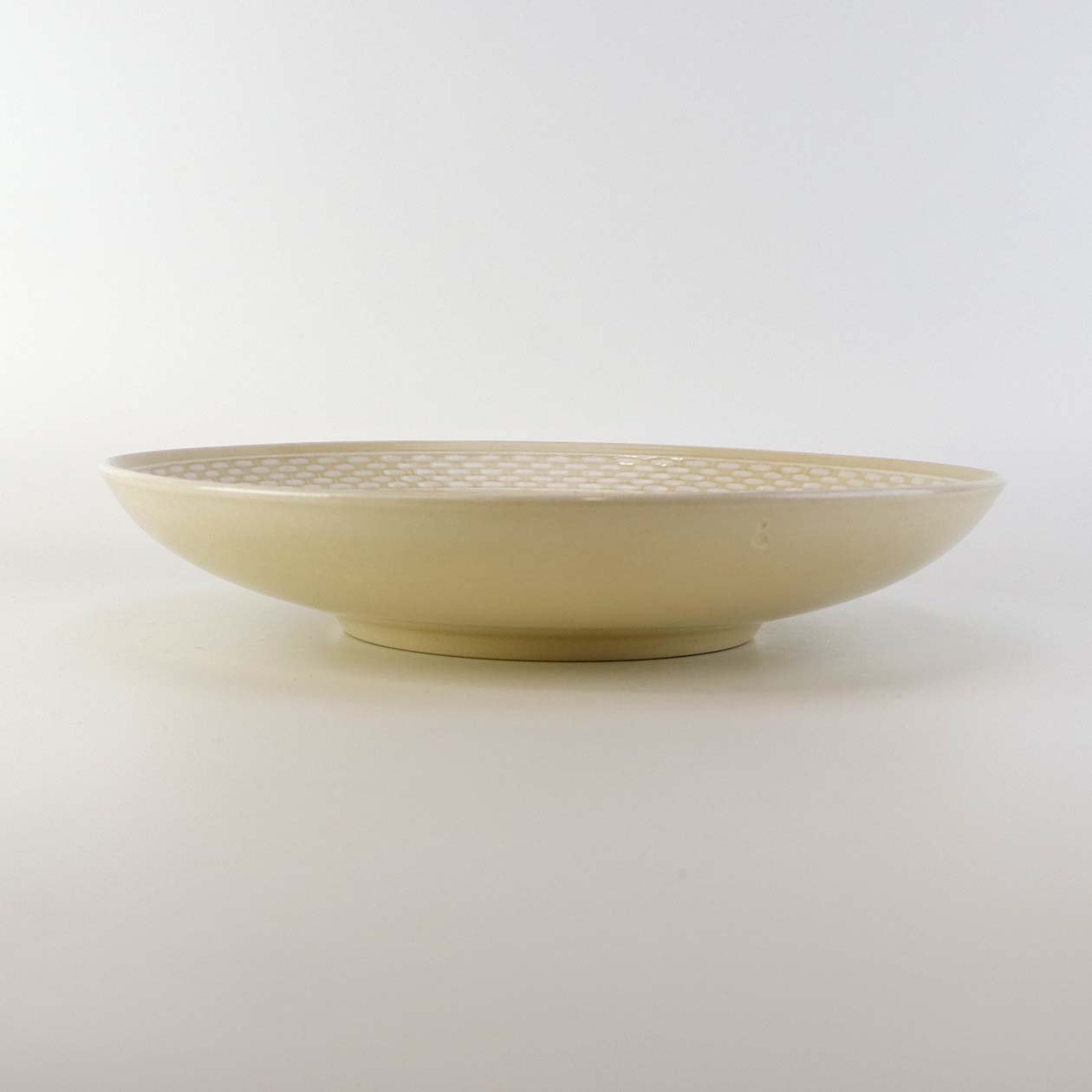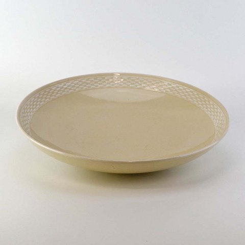 Sandfarvet fajancestel i stelform Viktoria II - Fletværk med dekoration af hvidt flet på gullig baggrund.