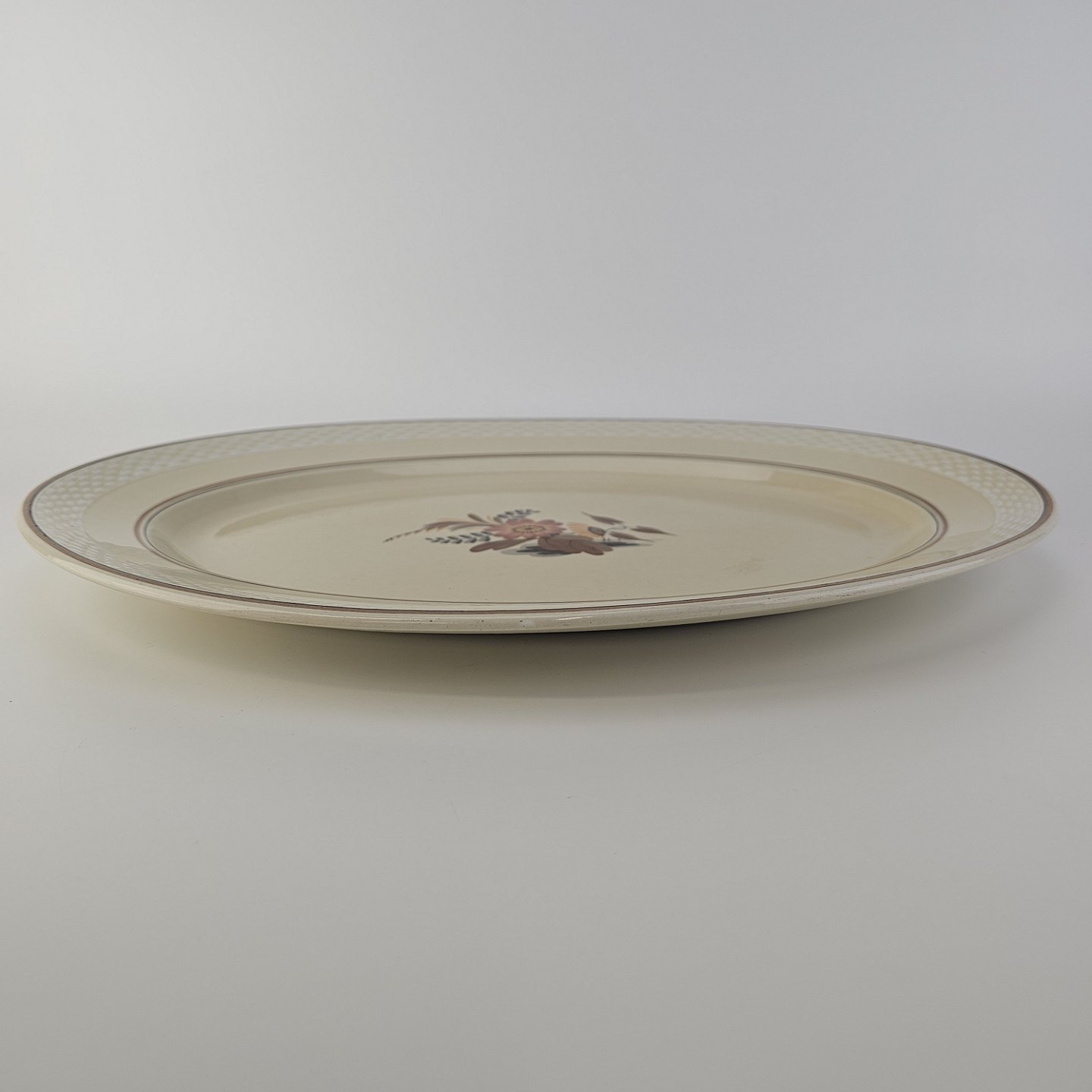 Knud er cremefarvet fajance dekoreret med flettet kant og brune og orange blomster. Stellet blev produceret i år 1934-1963.
