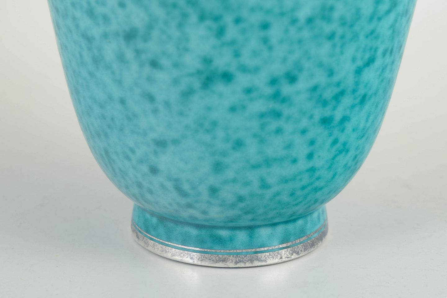 Turkisglaseret stentøjsvase fra Argenta-serien med indlagt sølvdekoration i form af figurmotiv. Model 978.