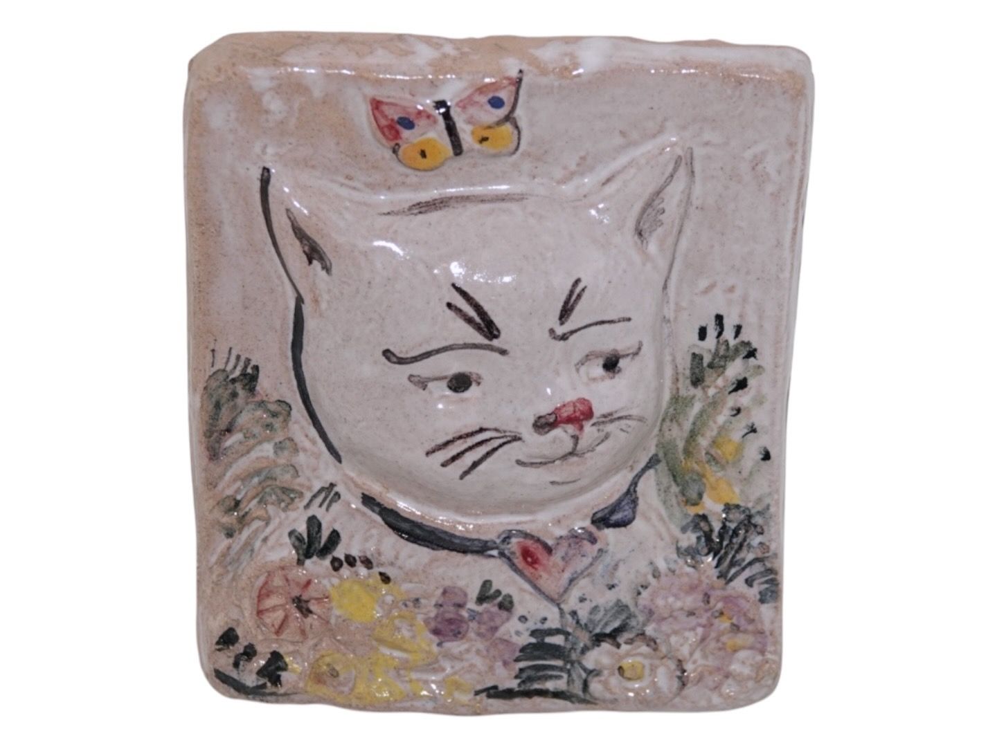 Doreen Middelboe keramik, lille firkantet plakette med en kat.