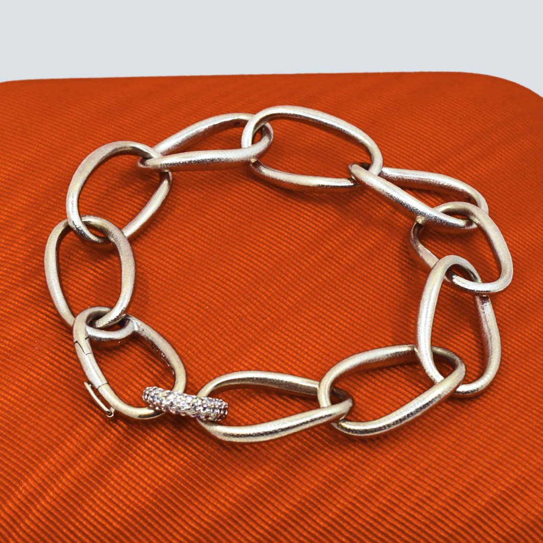 Ole Lynggaard; Leddelt Love armbånd - heavy, i 14 kt. hvidguld med diamanter. Lås med sikkerhedslås.