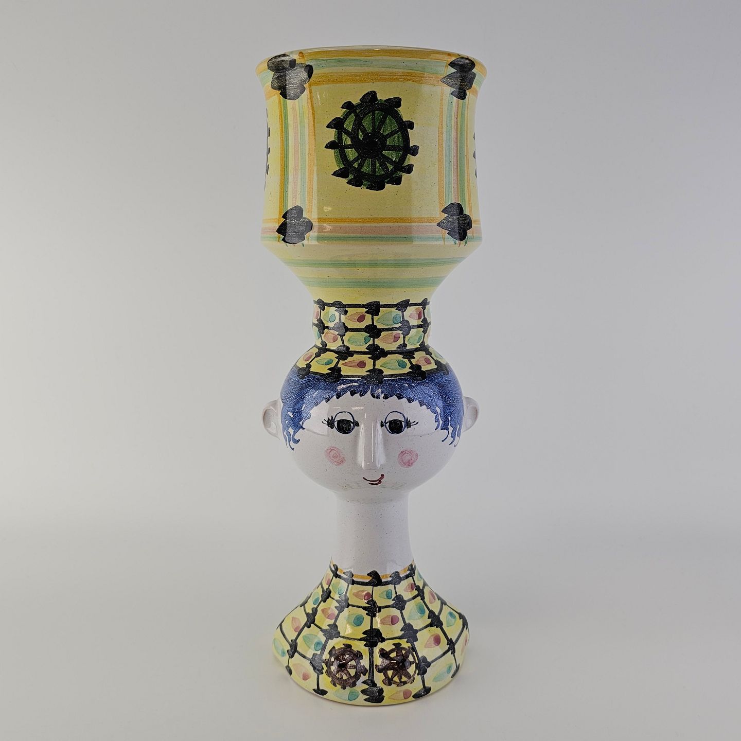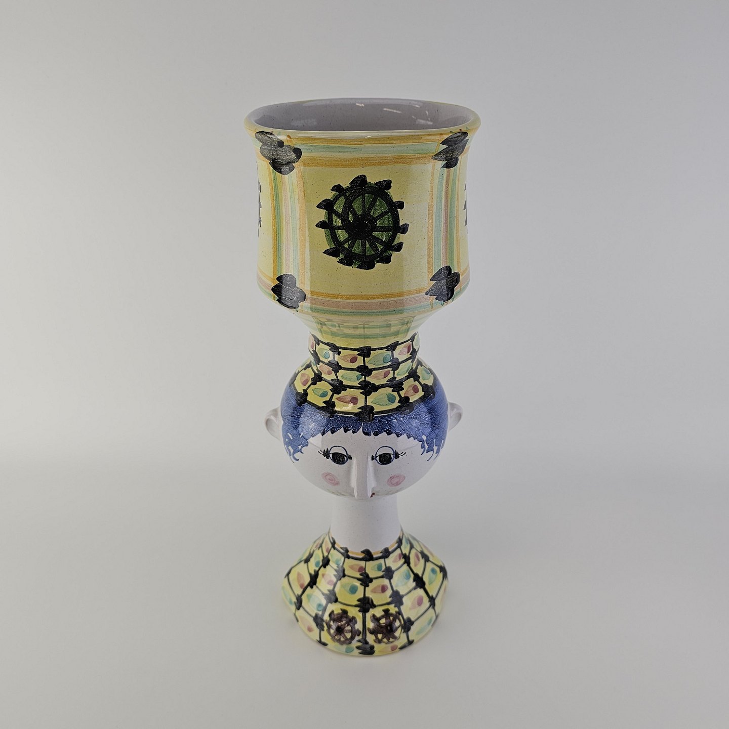 Håndmalet vase af porcelæn med motiv af et kvindehoved
