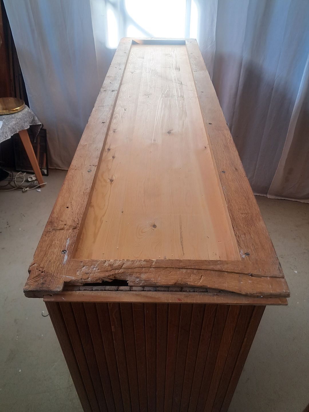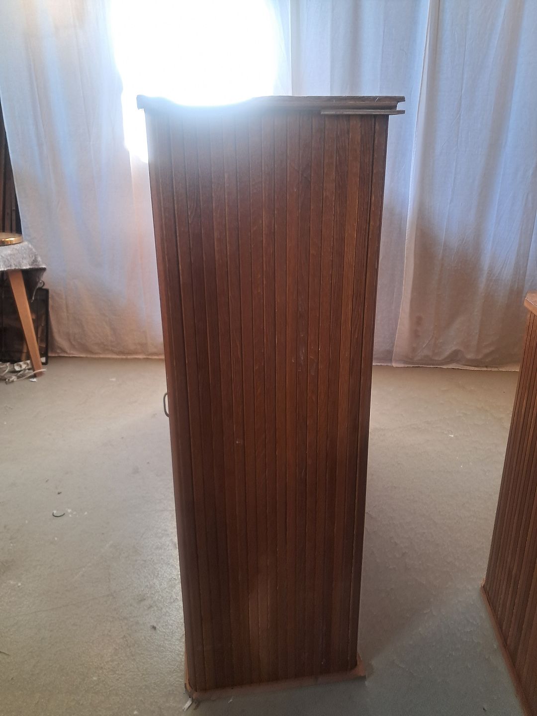 Jalousiskab i fineret egetræ, fra 1950erne.