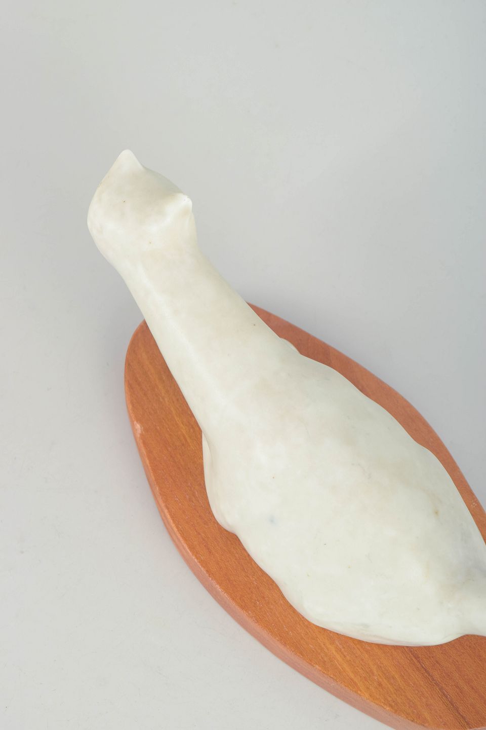 Lillemor Petersson for Rörstrand, kattefigur i stentøj på træfod.