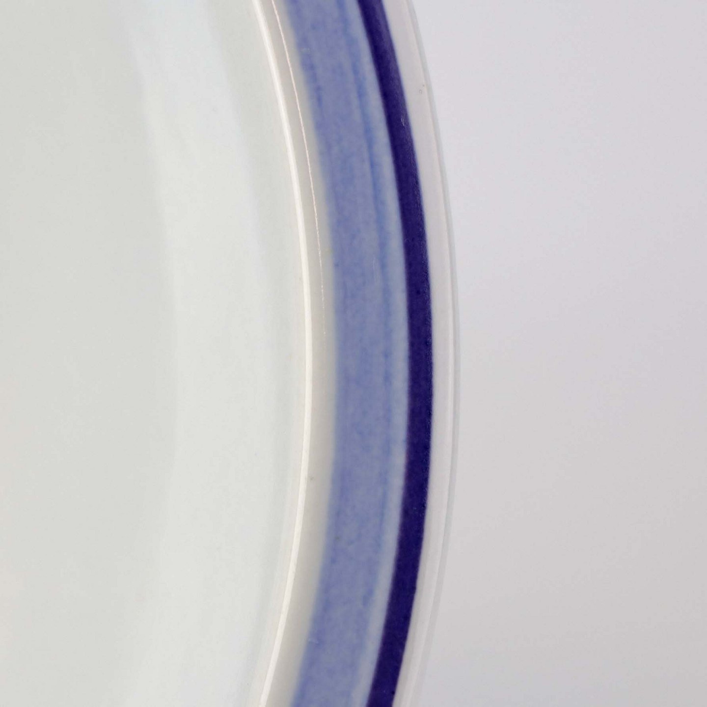Fajancestel i stelform CA med dekoration af abstrakt motiv i blå og lyseblå på en råhvid baggrund.