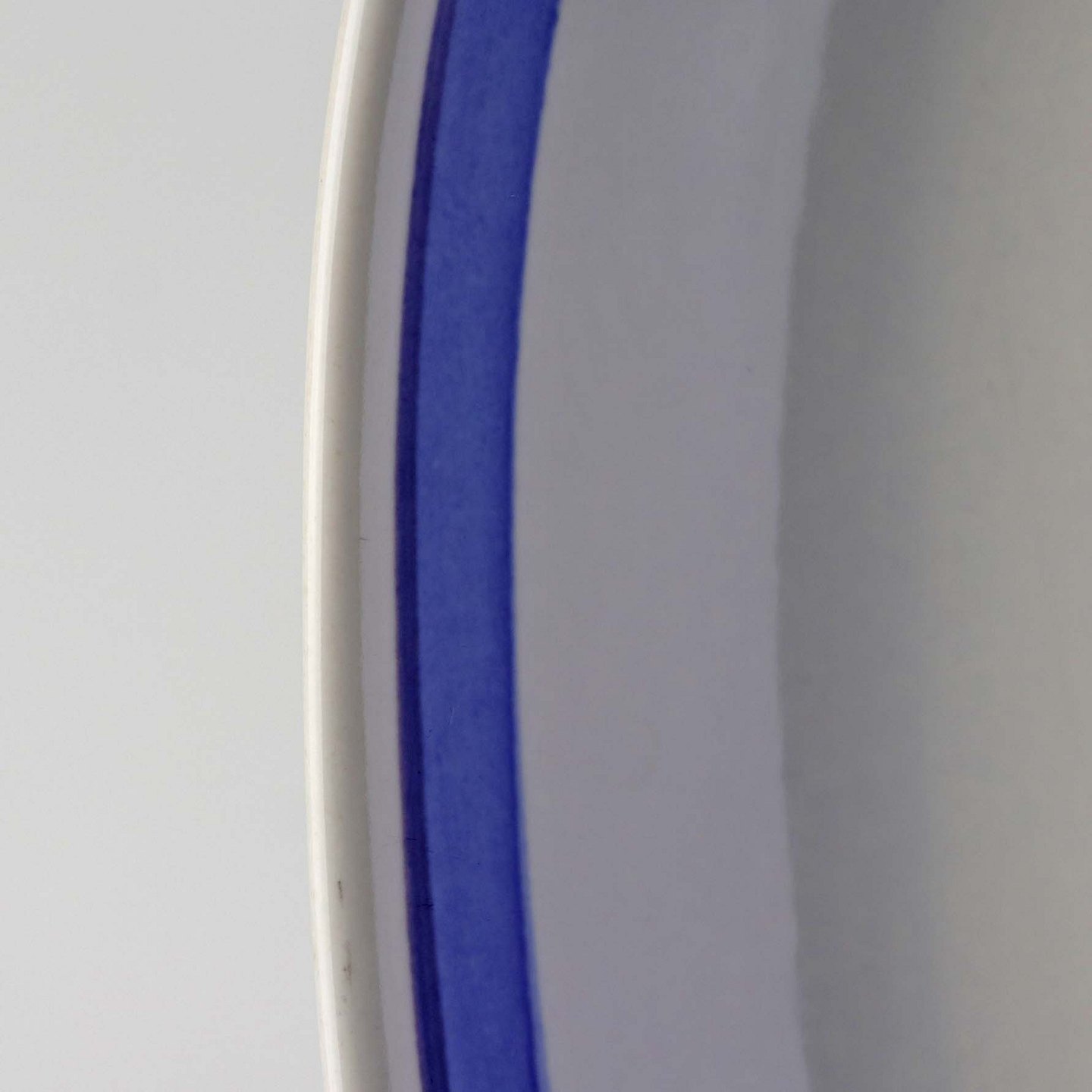 Fajancestel i stelform CA med dekoration af abstrakt motiv i blå og lyseblå på en råhvid baggrund.