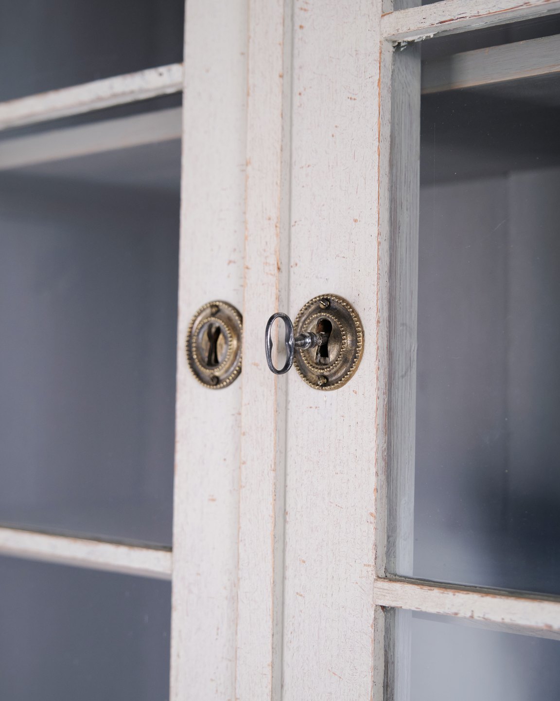 Gustaviansk Vitrineskab i Lysegrå med Patina fra År 1790