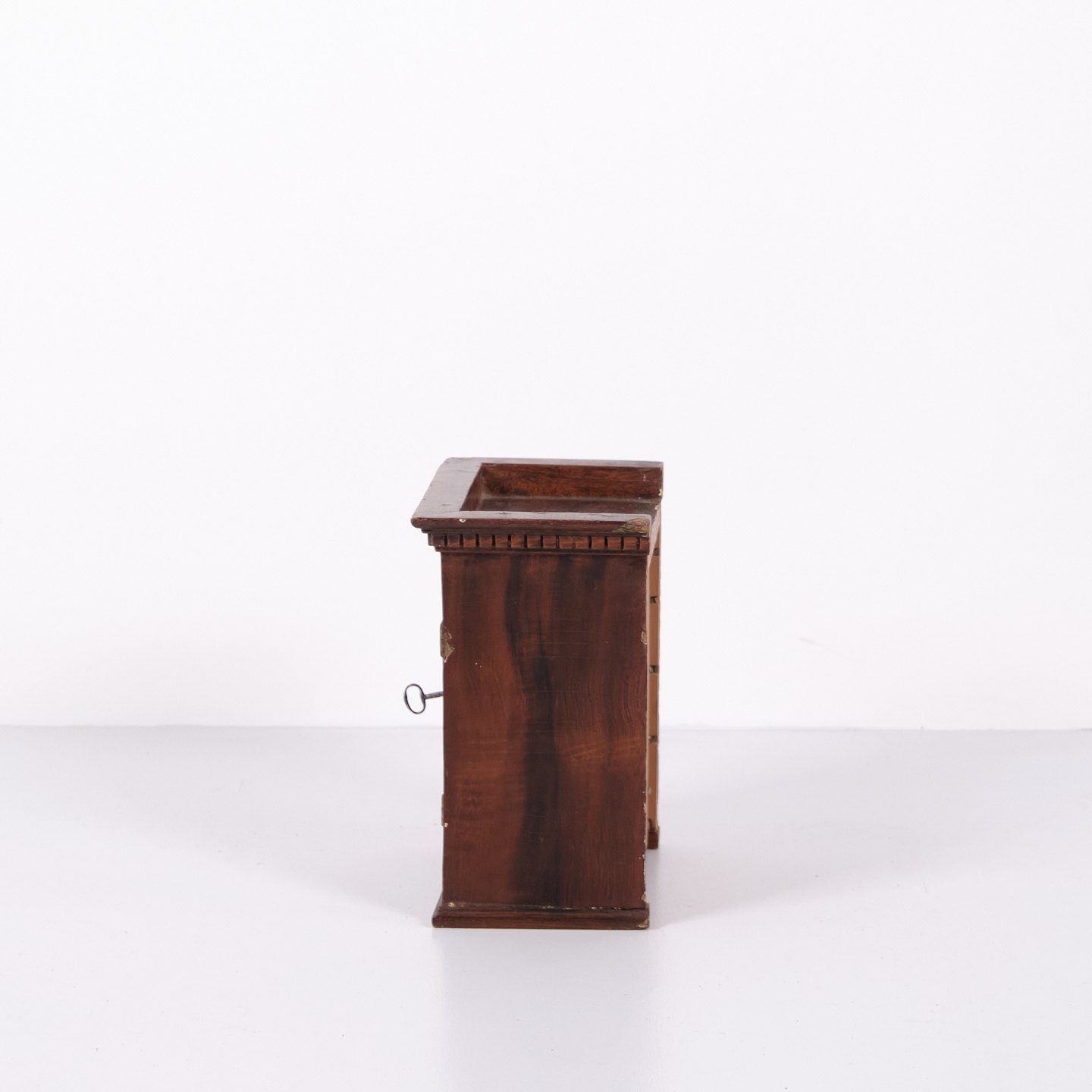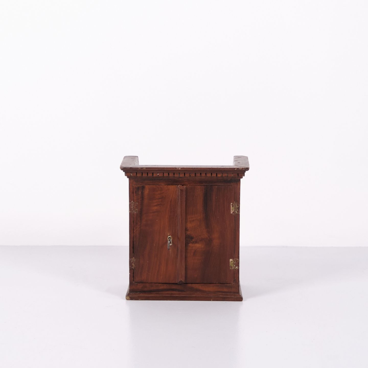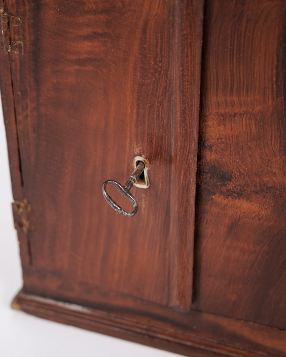 Antikt miniaturemøbel i åremålet fyrretræ med håndsmedede beslag fra 1840’erne. Unikt og dekorativt samlerobjekt med historisk karakter.