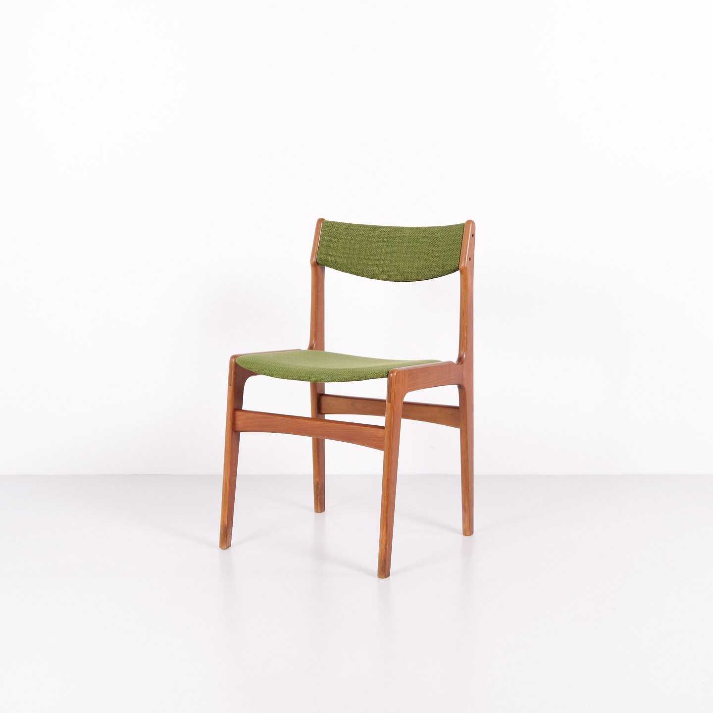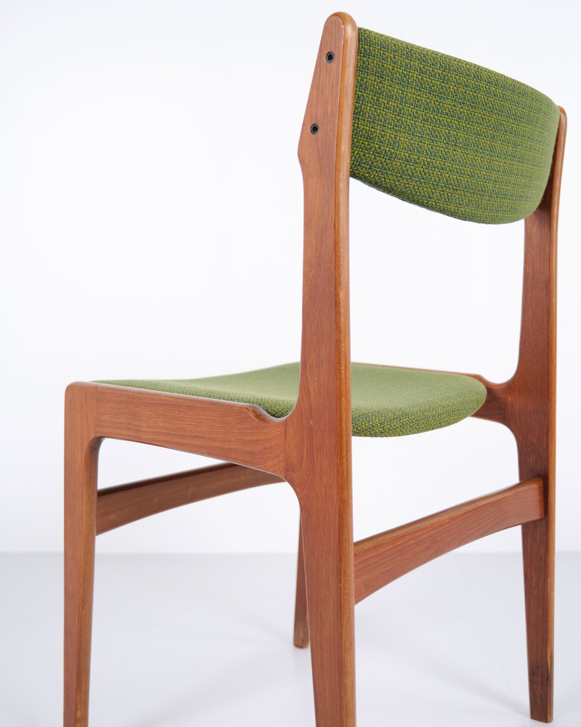 Erik Buch spisebordsstol fra 1960’erne i teak og grønt stof. Klassisk dansk design.